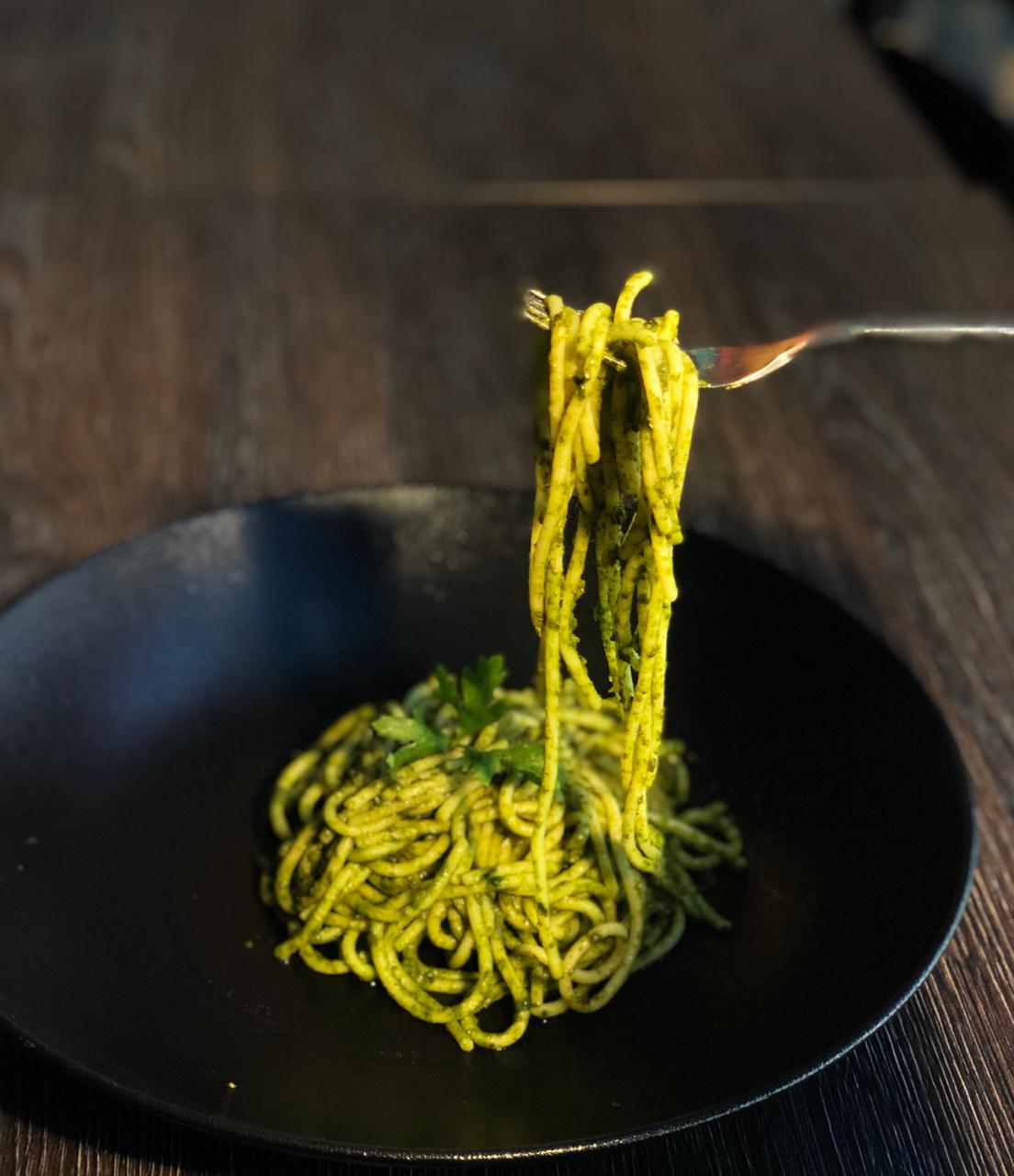 حيث افرد قائمة متكاملة من الاطباق النباتية تشمل المقبلات والسلطات والوجبات الرئيسيّة، وأشكال متعددة من البيتزا الشهية، هذا بالاضافة الى نوع من انواع القهوة النباتية «كراميلايزر» والتي تقدم باردة أو ساخنة.