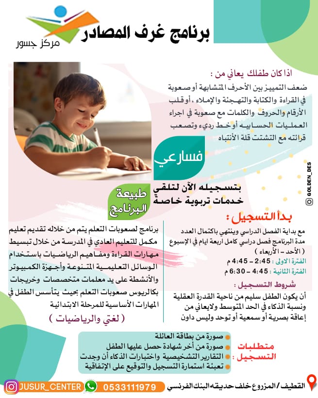 نأخذ بيد طفلك لعالم الإبداع والتفوق في «مركز جسور لصعوبات التعلم»