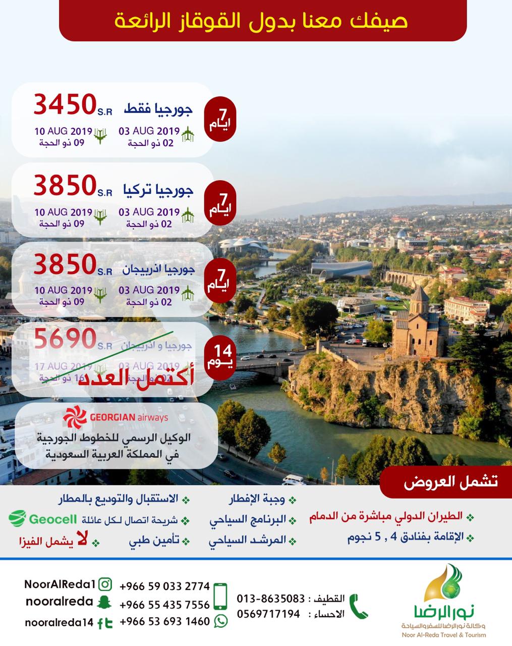 ✨ مباشرة من الدمام.. صيفك مع نور الرضا الى دول القوقاز الرائعة ب 3450 شامل✨