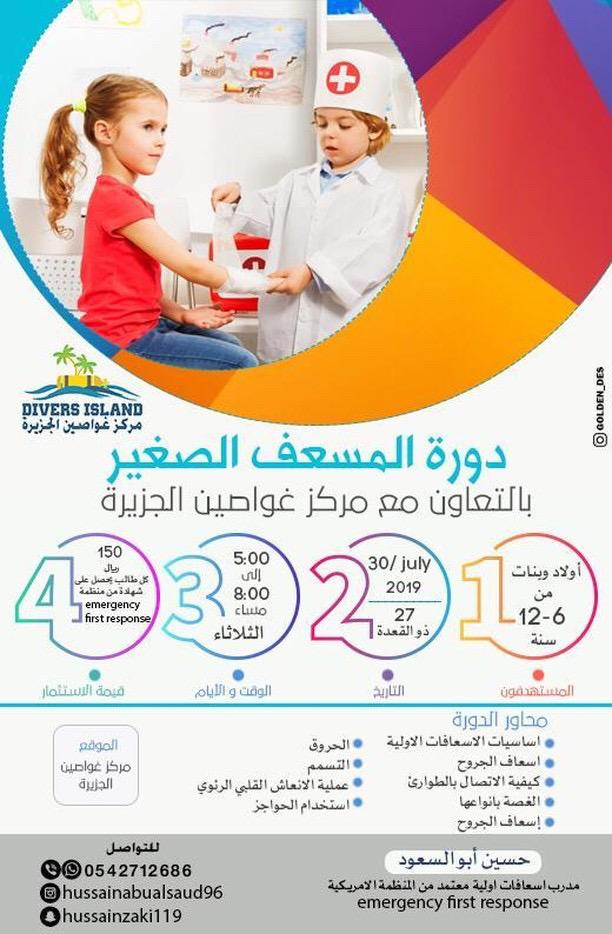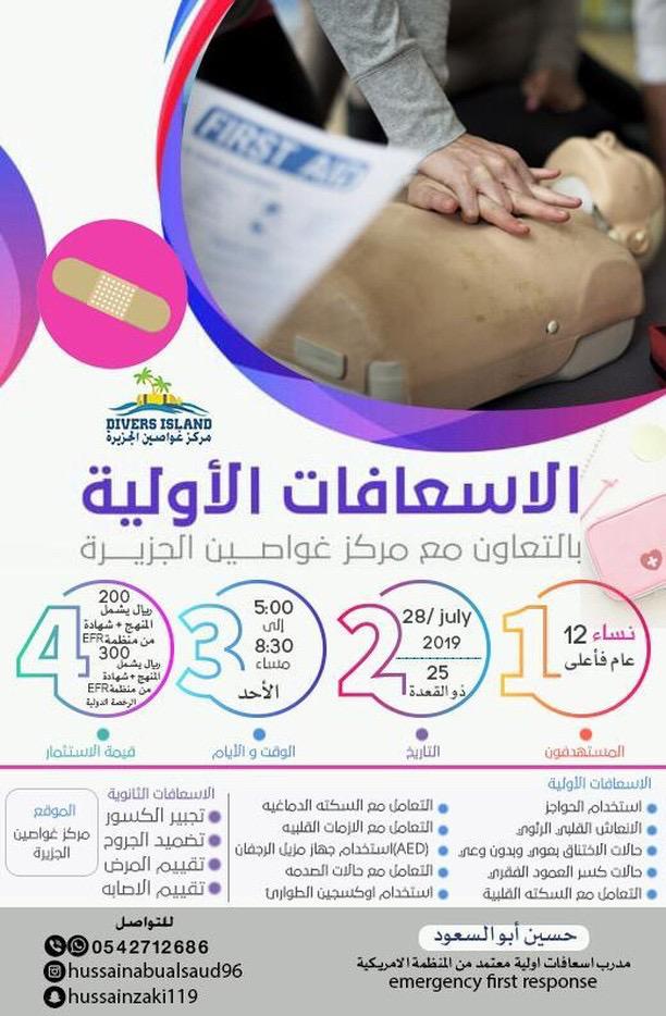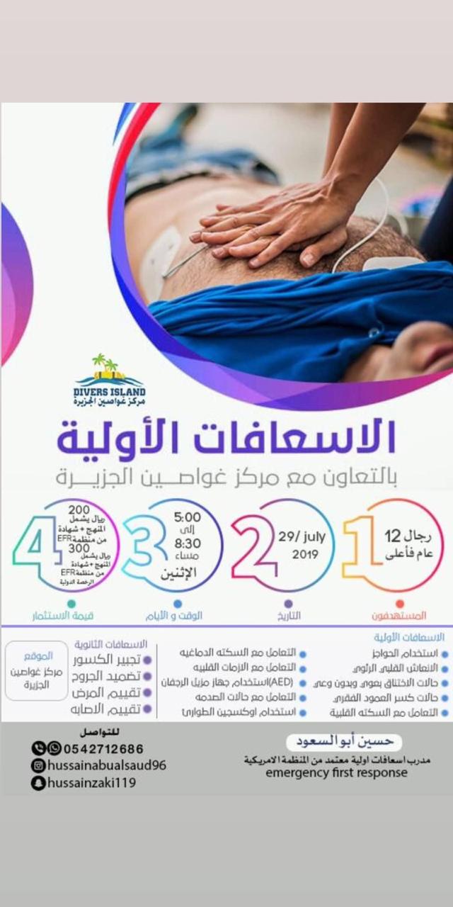 ينظم مركز غواصين الجزيرة دورة اسعافات أولية وثانوية باعتماد دولي من منظمة EMERGENCY FIRST RESPONSE.