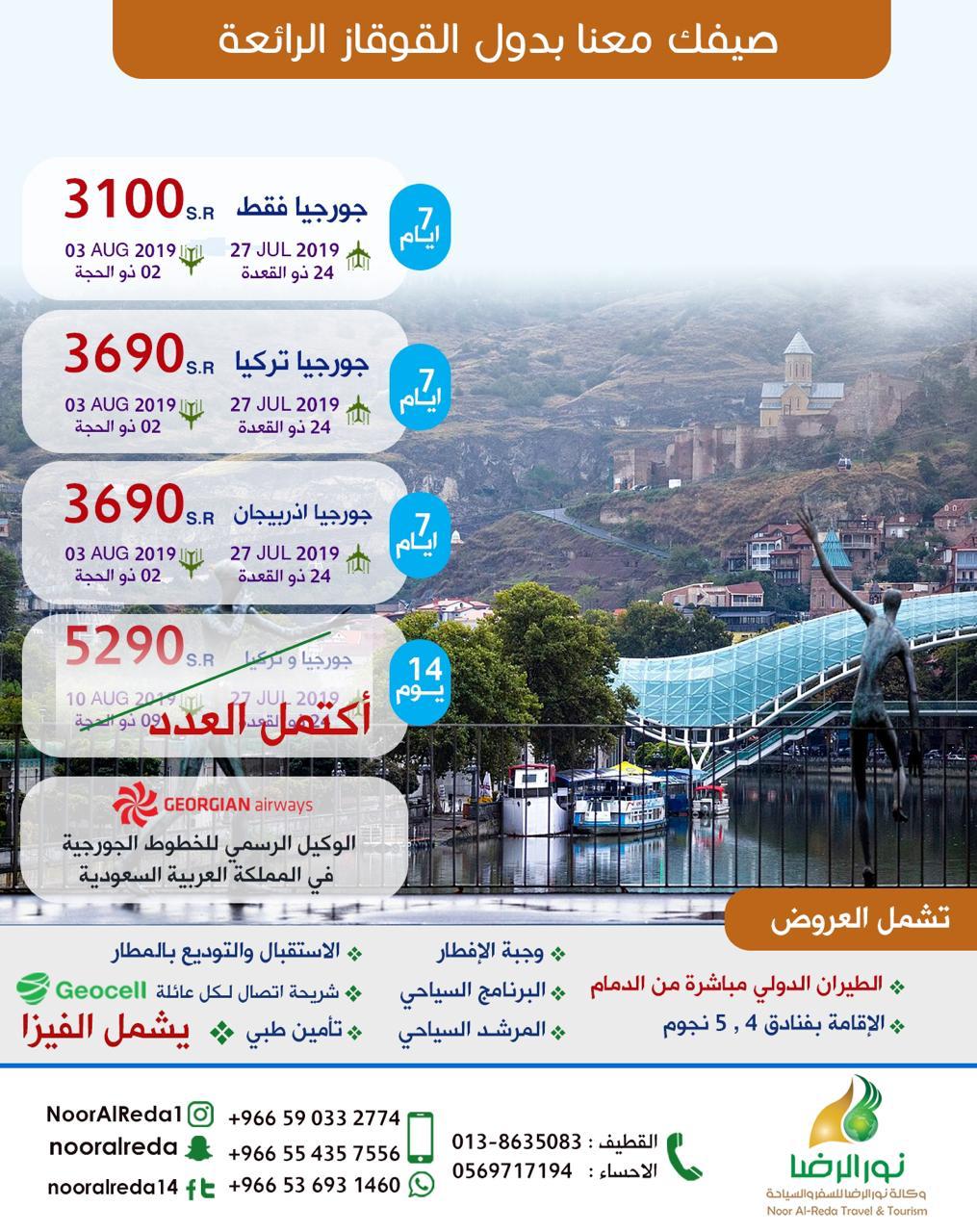✨ مباشرة من الدمام.. صيفك مع نور الرضا الى دول القوقاز الرائعة ب 3100 شامل✨
