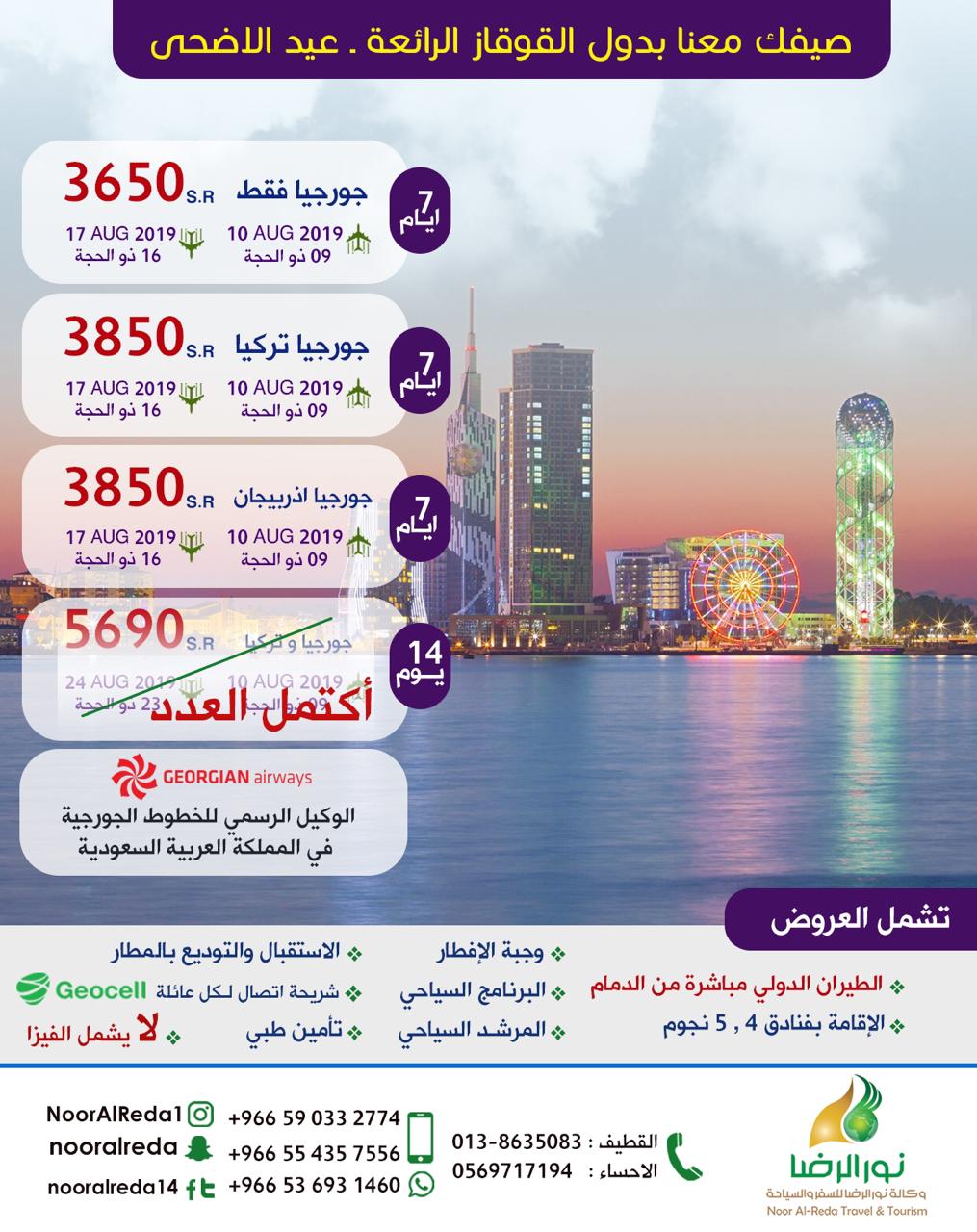 ✨ مباشرة من الدمام.. صيفك مع نور الرضا الى دول القوقاز الرائعة ب 3450 شامل