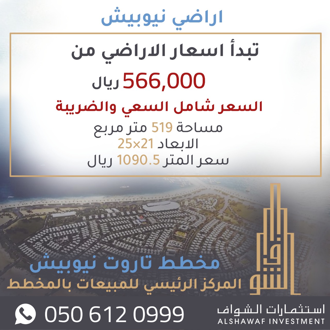 عند شرائك ارض بنيوبيش لدى المركز الرئيسي المعتمد للمبيعات استثمارات الشواف العقاري