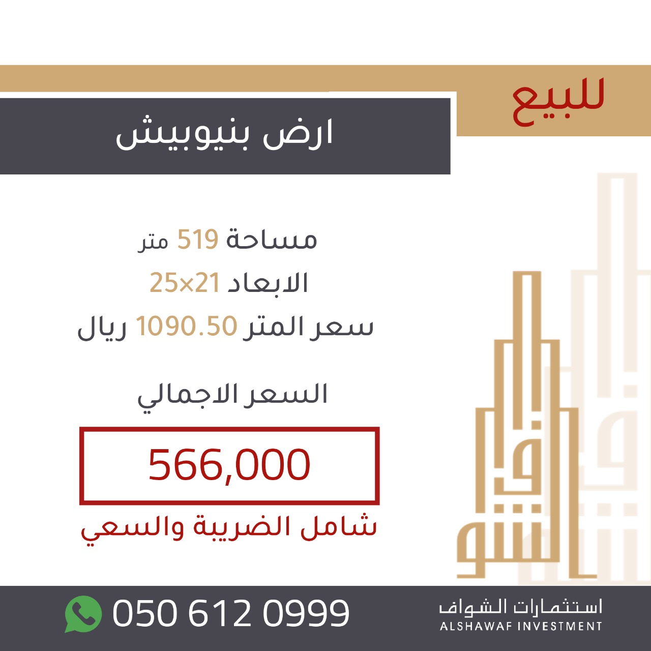 «عرض مميز» عند شرائك ارض بنيوبيش لدى المركز الرئيسي المعتمد للمبيعات استثمارات الشواف العقاري