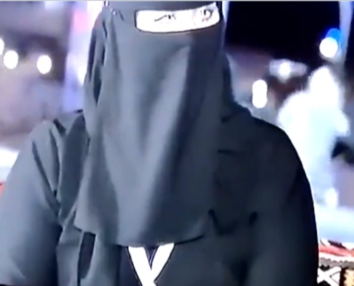 وطالب مغردون بشدة تحت وسم #متحرش _بمنقبة بمعاقبة المتحرش الذي قام بتصوير شاشة التلفاز وهو يعلق على السيدة بألفاظ غير محتشمة.