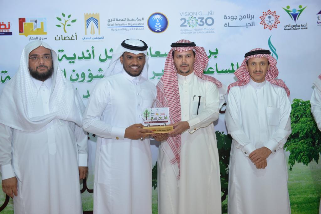 ورحب قائد نادي الحي الفهد بدر المحارف في كلمته بالحضور ومؤكداً على أهمية غرس الأشجار والمحافظُة عليها والتعهد بخدمتها وأنها تعد من الأعمال التي لا ينقطع أجرها وثوابها.