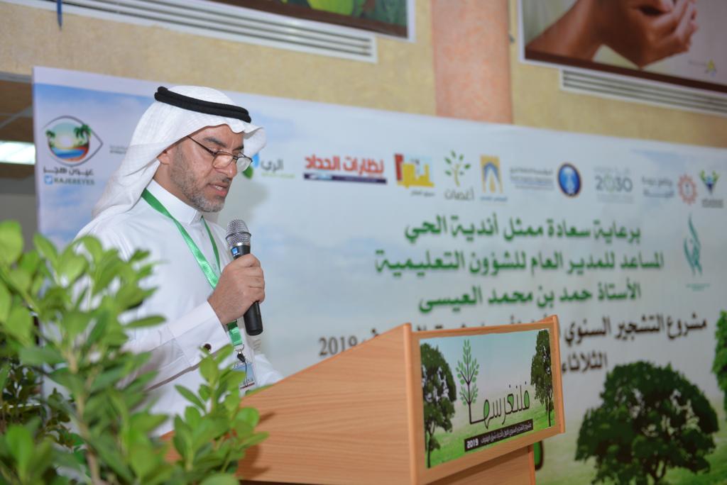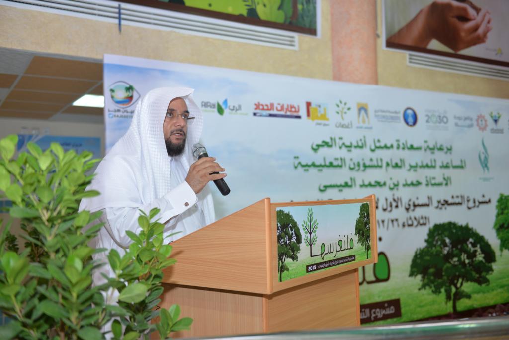 برعاية ممثل أندية الحي المساعد للمدير العام للشؤون التعليمية بالأحساء حمد بن محمد العيسى تم تدشين مشروع التشجير السنوي الأول لأحياء شرق الهفوف «فلنغرسها»، عصر الثلاثاء، بنادي الحي الفهد الترفيهي التعليمي بمدرسة وادي طوى الإبتدائية بحي الملك فهد بمدينة الهفوف.