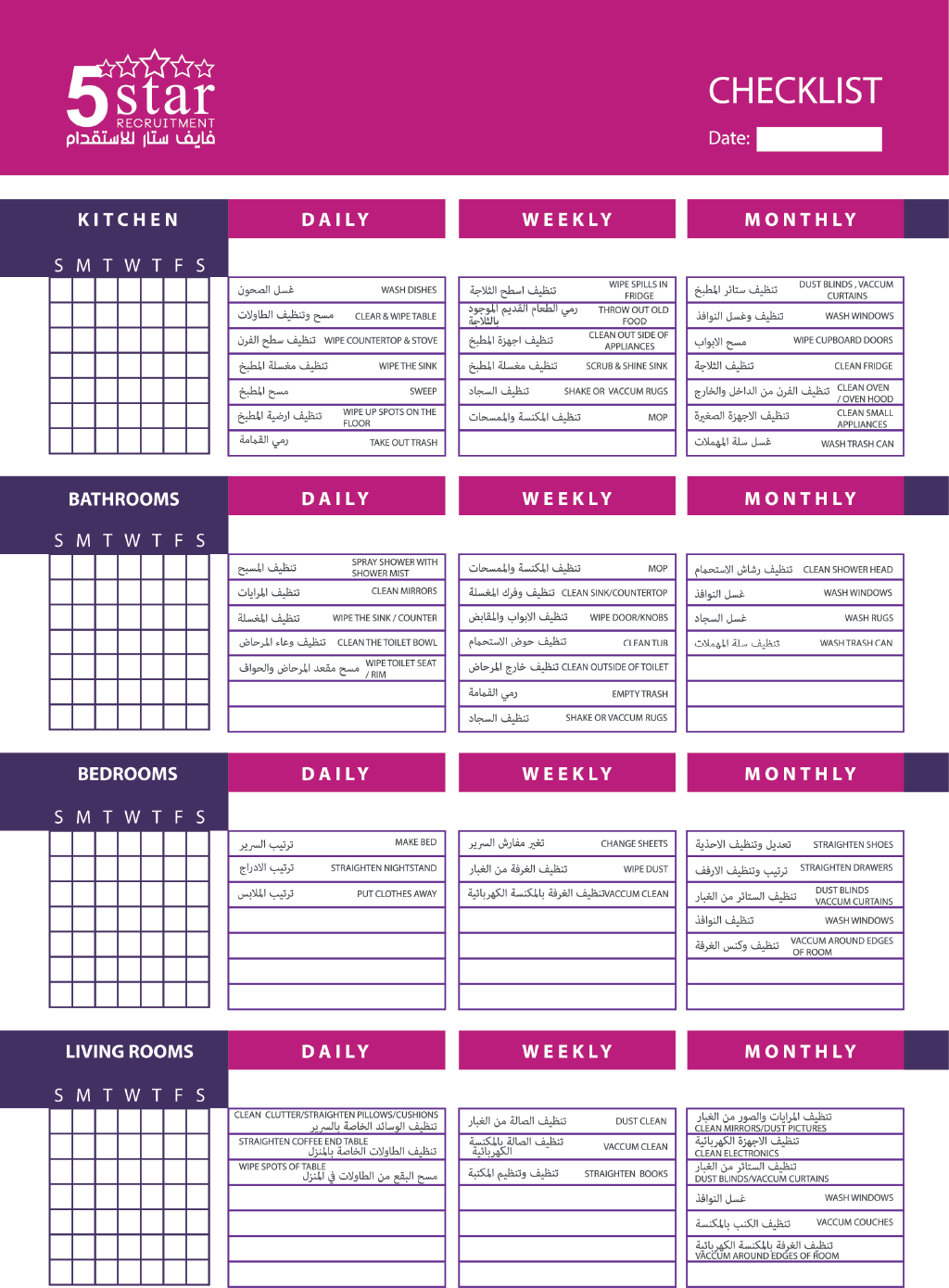 فايف ستار للاستقدام يهديكم جدول يومي مقترح للعمالة المنزلية