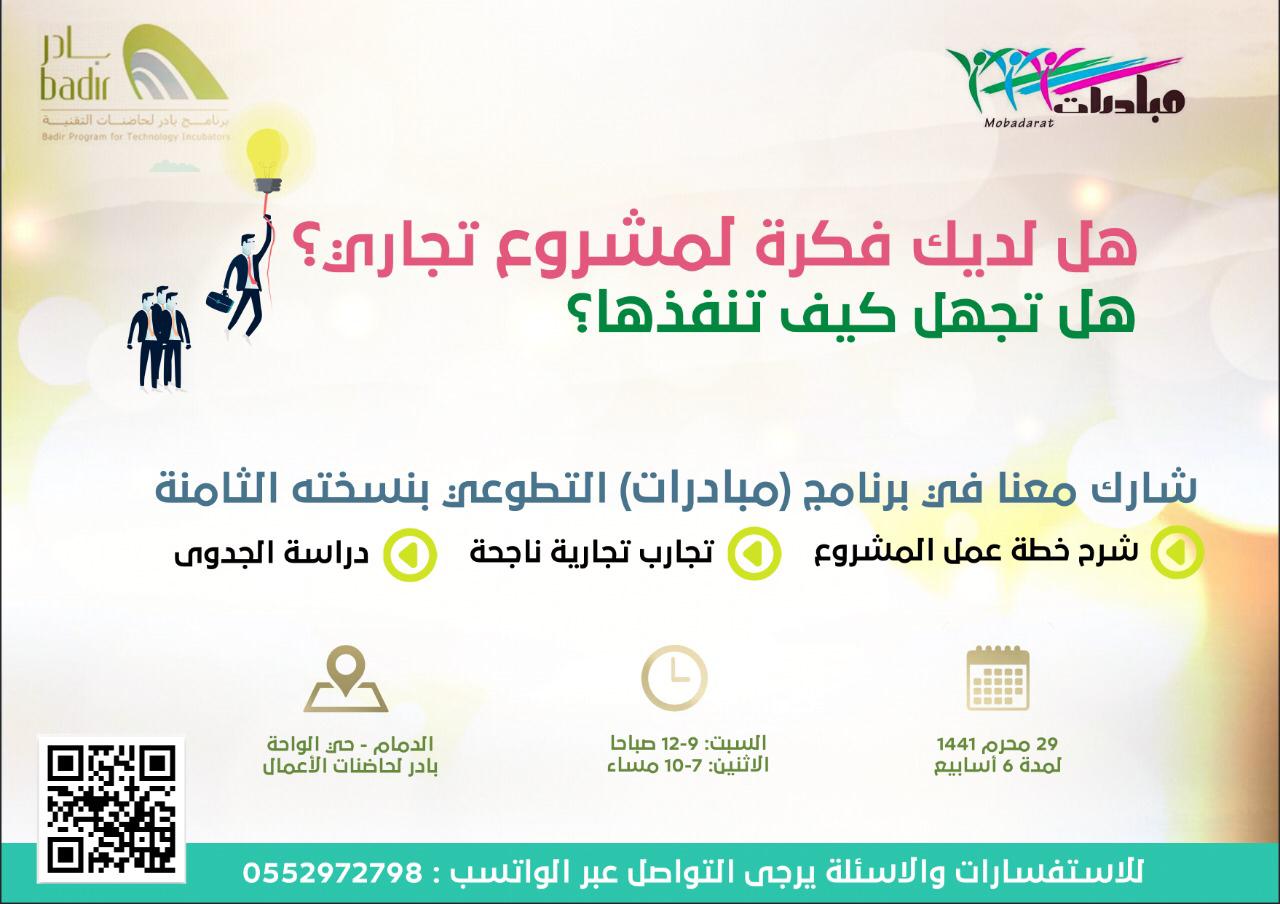مبادرات التطوعية تطلق النسخة الثامنة من برنامج ريادة الأعمال بادر بالتسجيل