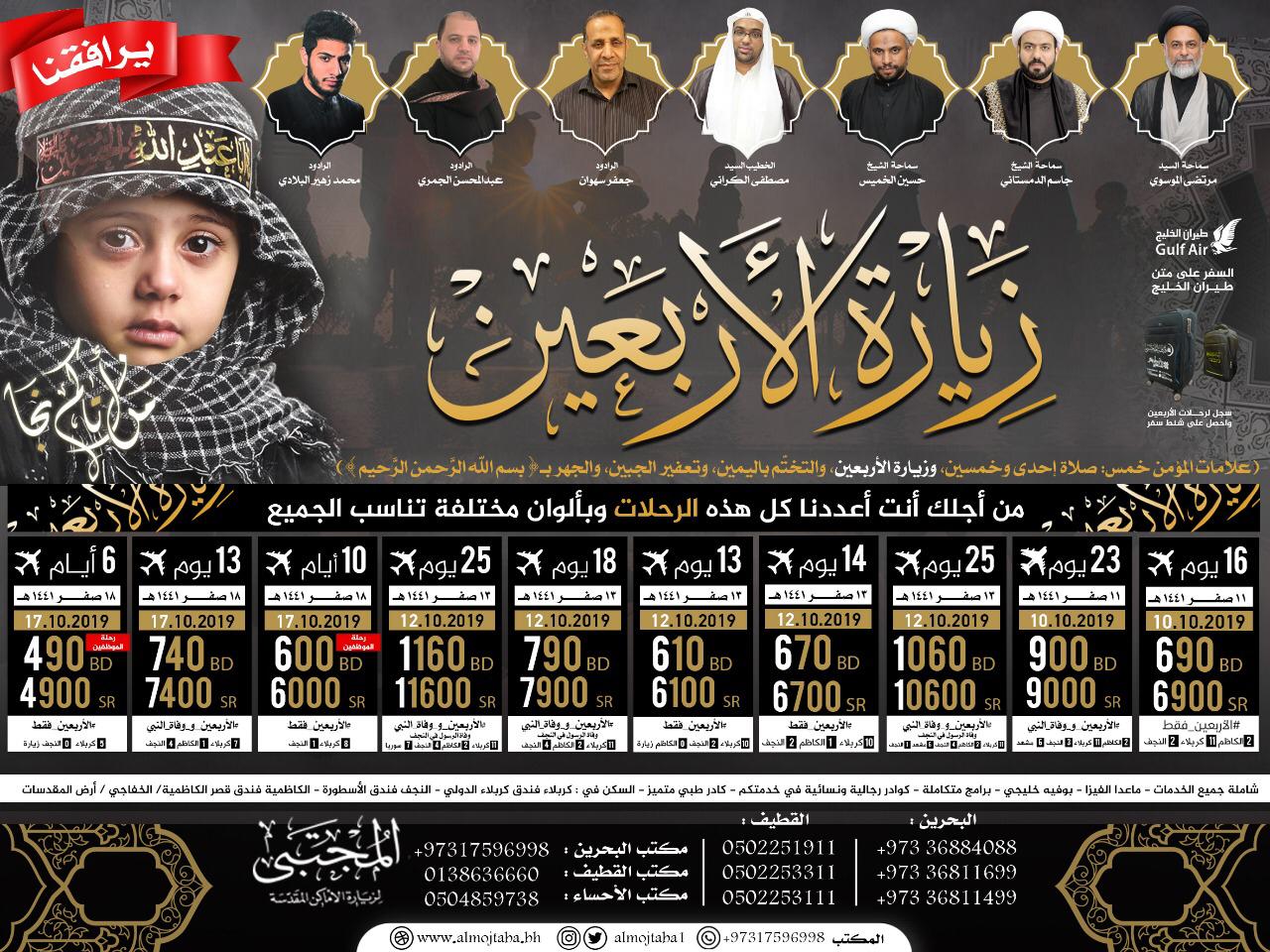 أحجز مقعدك لرحلات الأربعين مع حملة المجتبى
