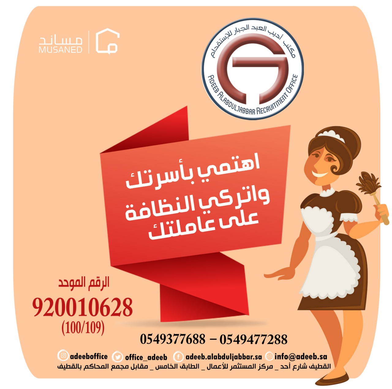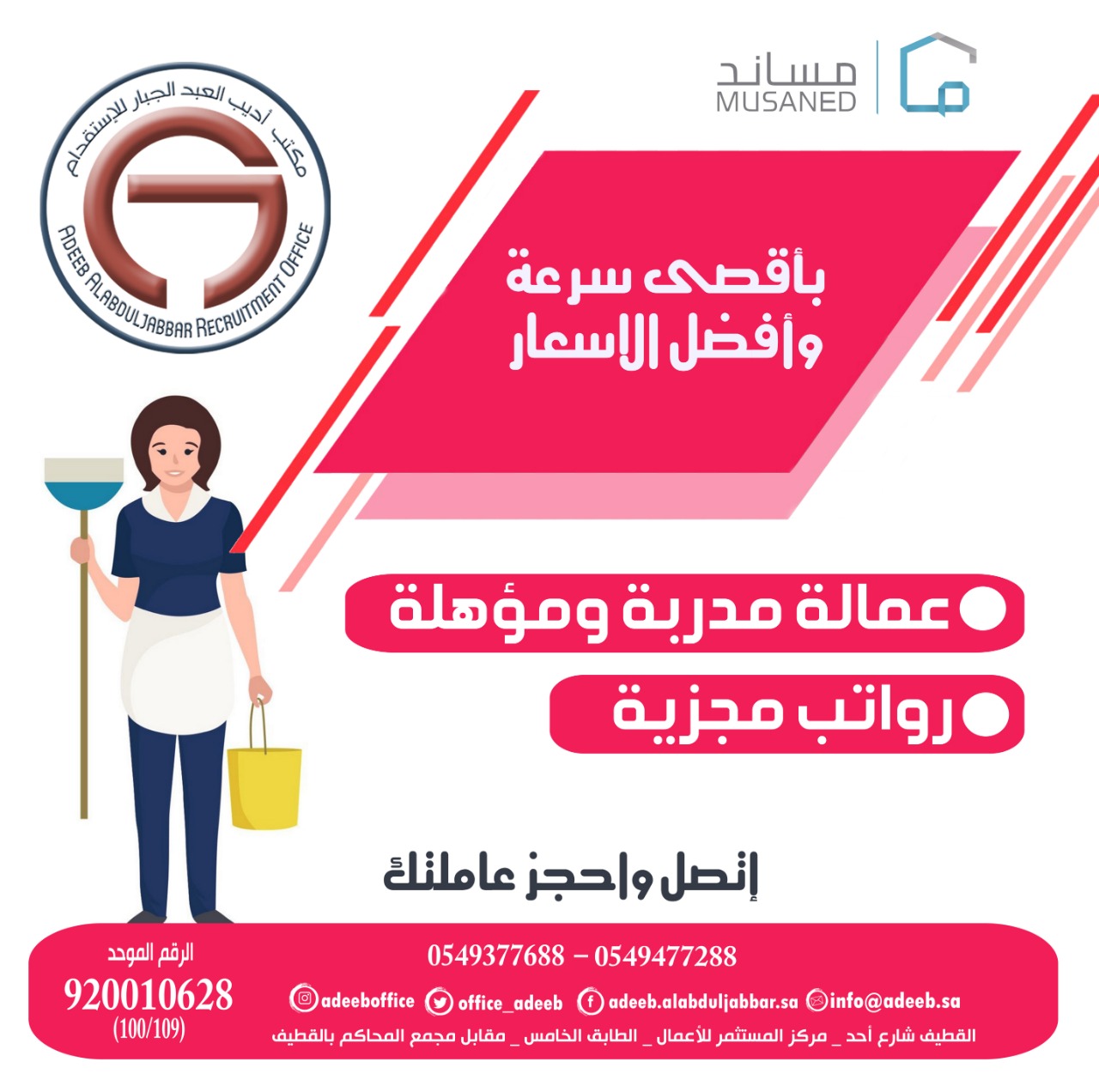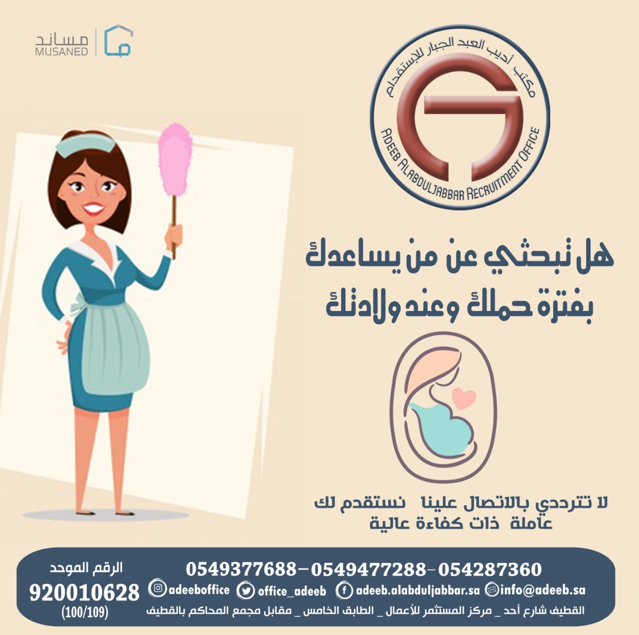 تميّز بسرعة الإنجاز مع مكتب «أديب العبد الجبار» لاستقدام العمالة المنزلية