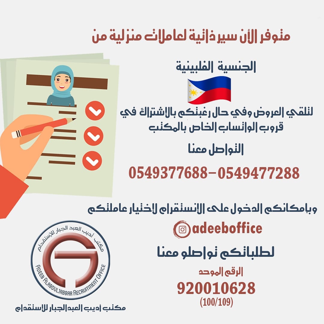 تابعوا جديدنا من السير الذاتية وفيديوهات للخادمات أولا بأول عبر قنواتنا في وسائل التواصل الاجتماعي انستجرام