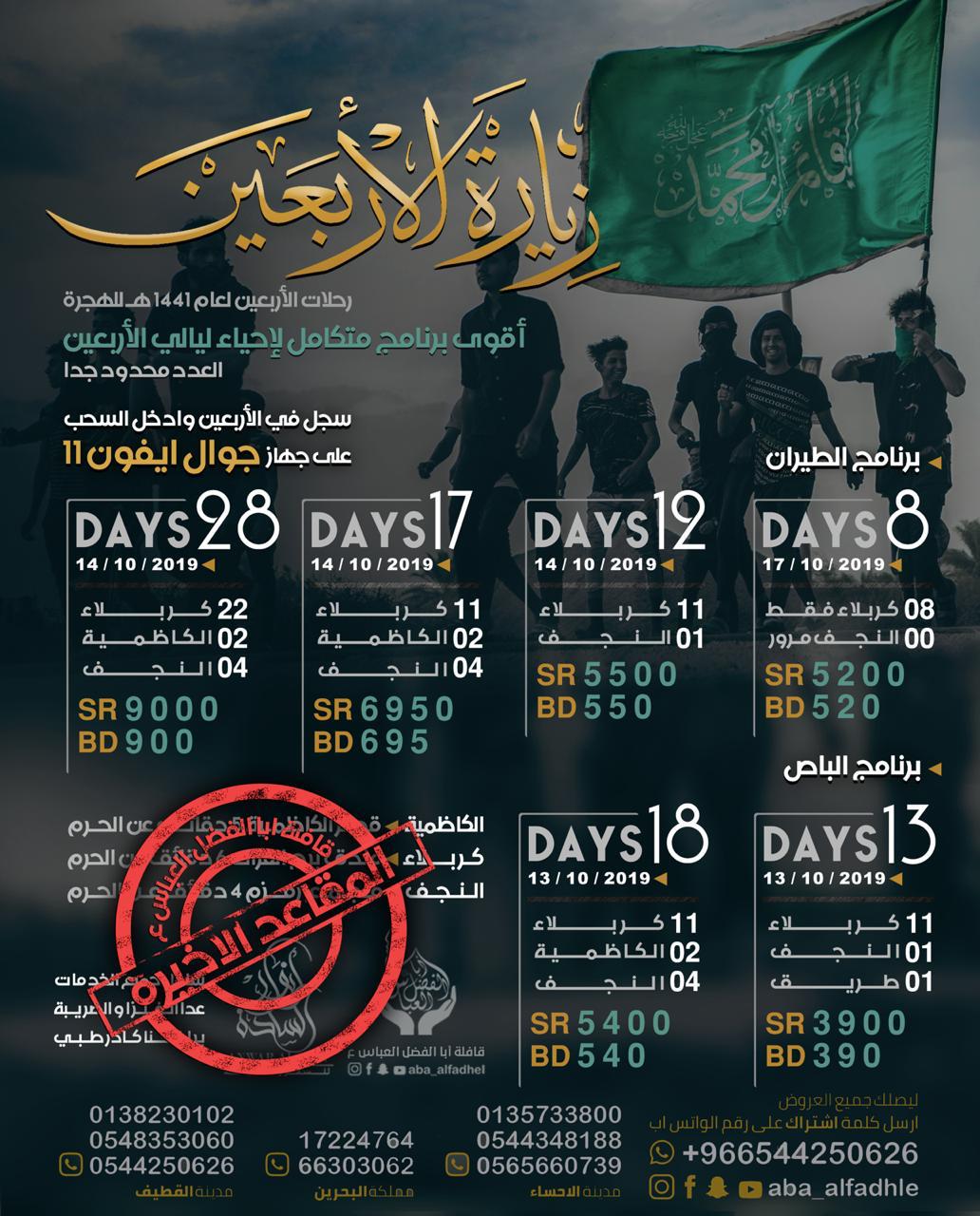 آخر المقاعد لرحلات الأربعين في قافلة أبا الفضل العباس.. بادر بالتسجيل