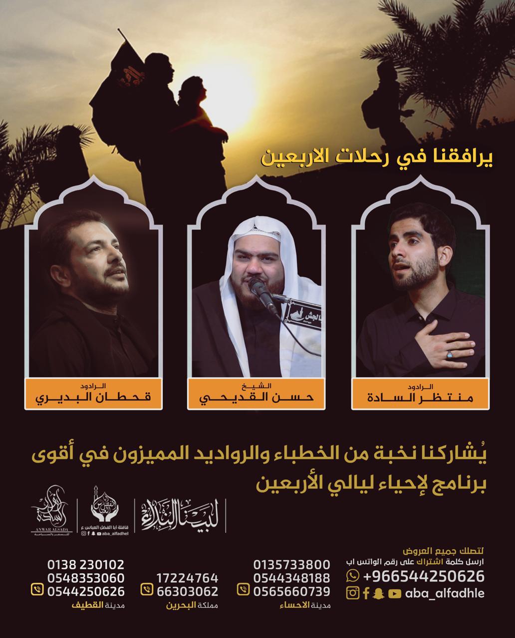 يشاركنا نخبة من الخطباء والرواديد المميزين في أقوى برنامج لإحياء ليالي الأربعين ..
