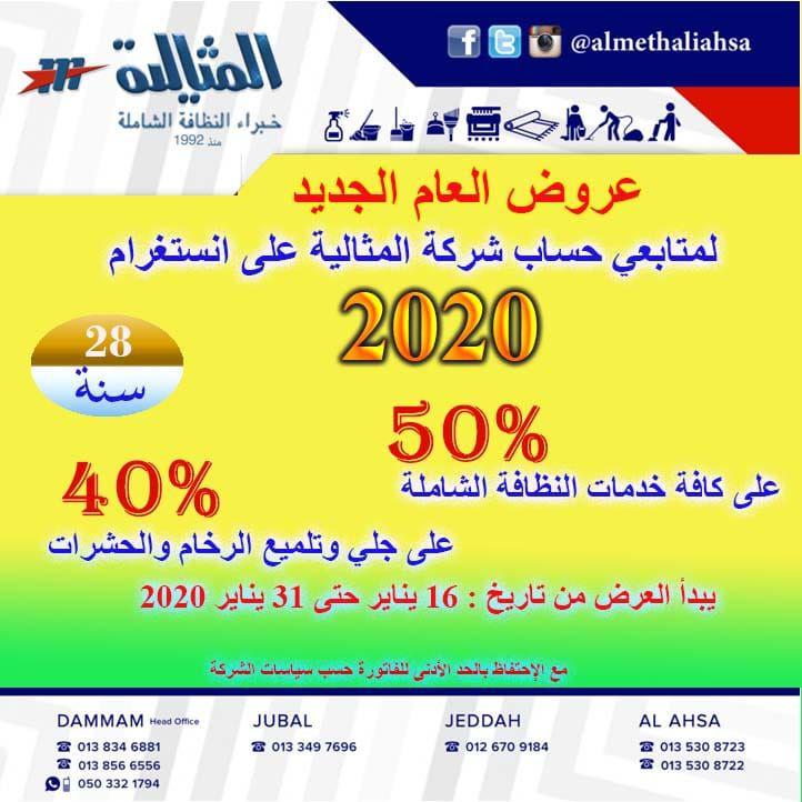 عروض العام الجديد 2020 لمتابعي حساب شركة المثالية على انستغرام