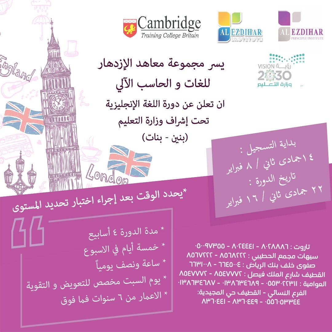 لاتفوّت العرض.. دورات لغة إنجليزية في معاهد الإزدهار
