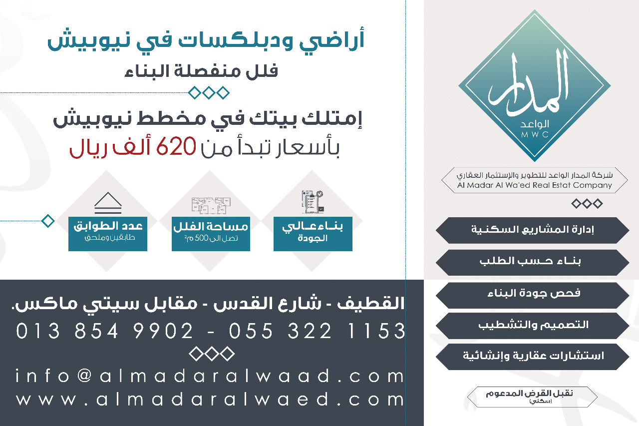 تقدم خدمات عقارية متميزة كما تقدم مجموعة كبيرة من عروض الأراضي والدبلكسات بمنطقة القطيف