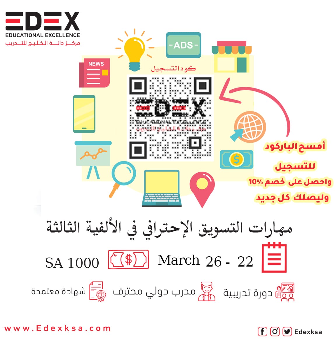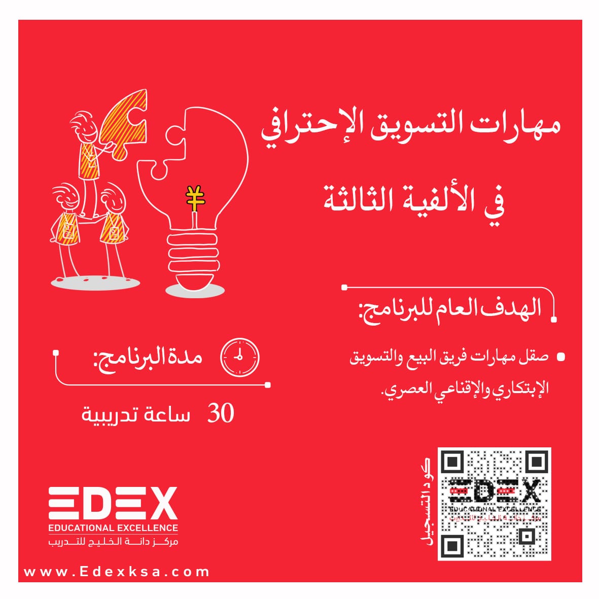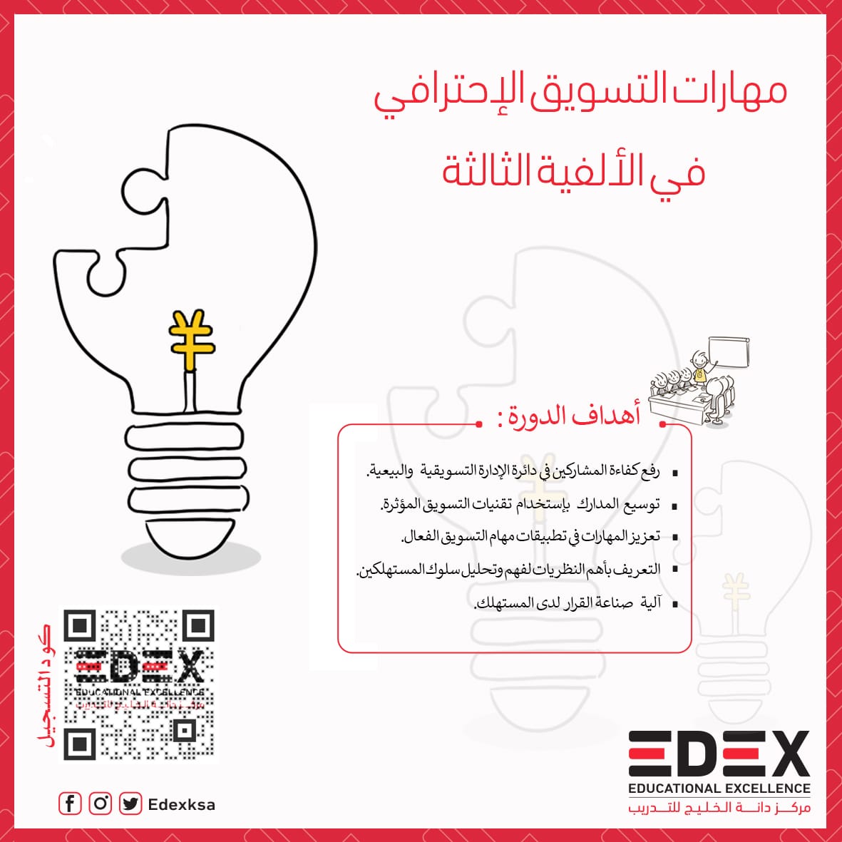 مركز دانة الخليج «EDEX» يقدم لكم دورة بعنوان مهارات التسويق الإحترافي في الألفية الثالثة: