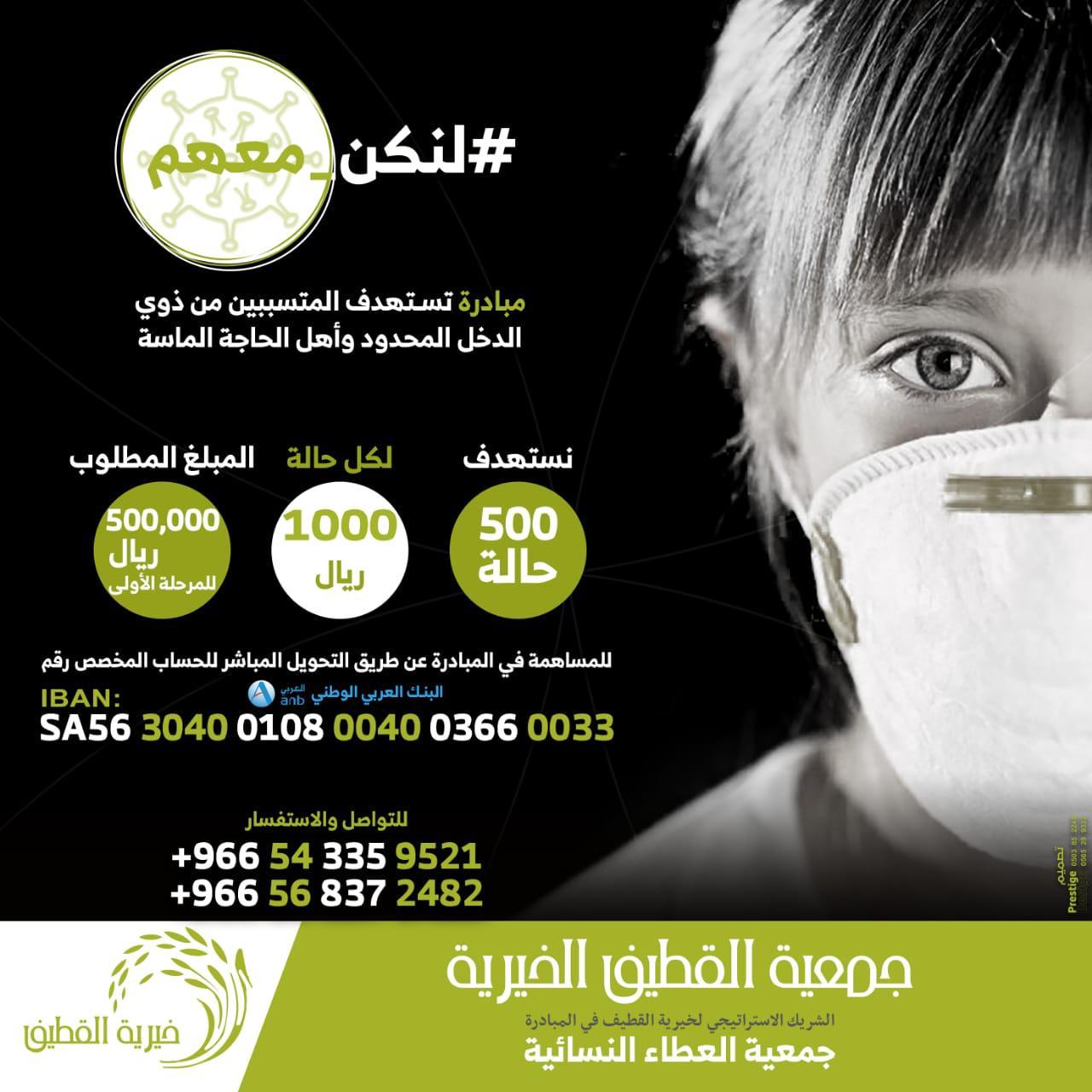 خيرية القطيف تطلق مبادرة ”لنكن معهم“ لدعم المتضررين من ”كورونا“