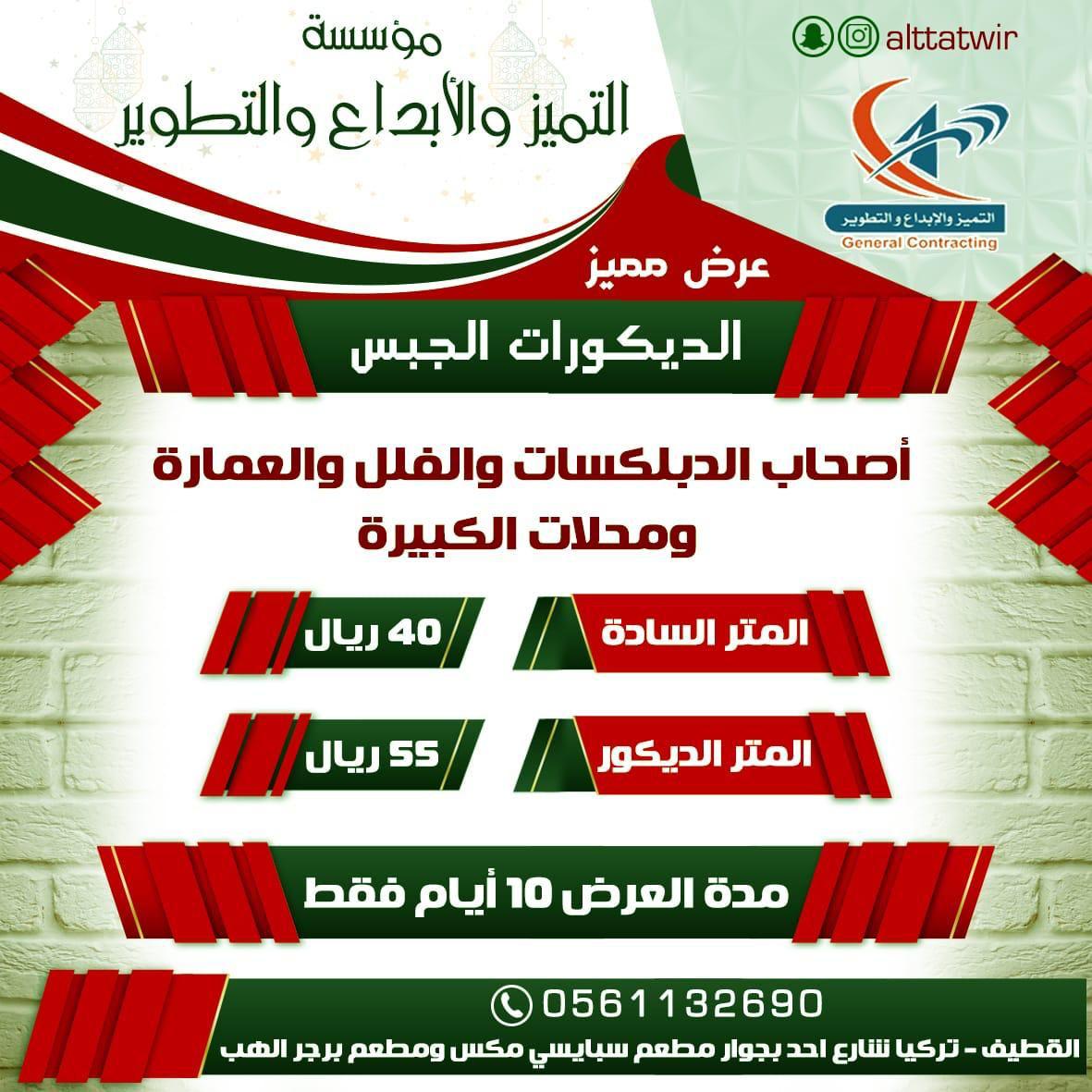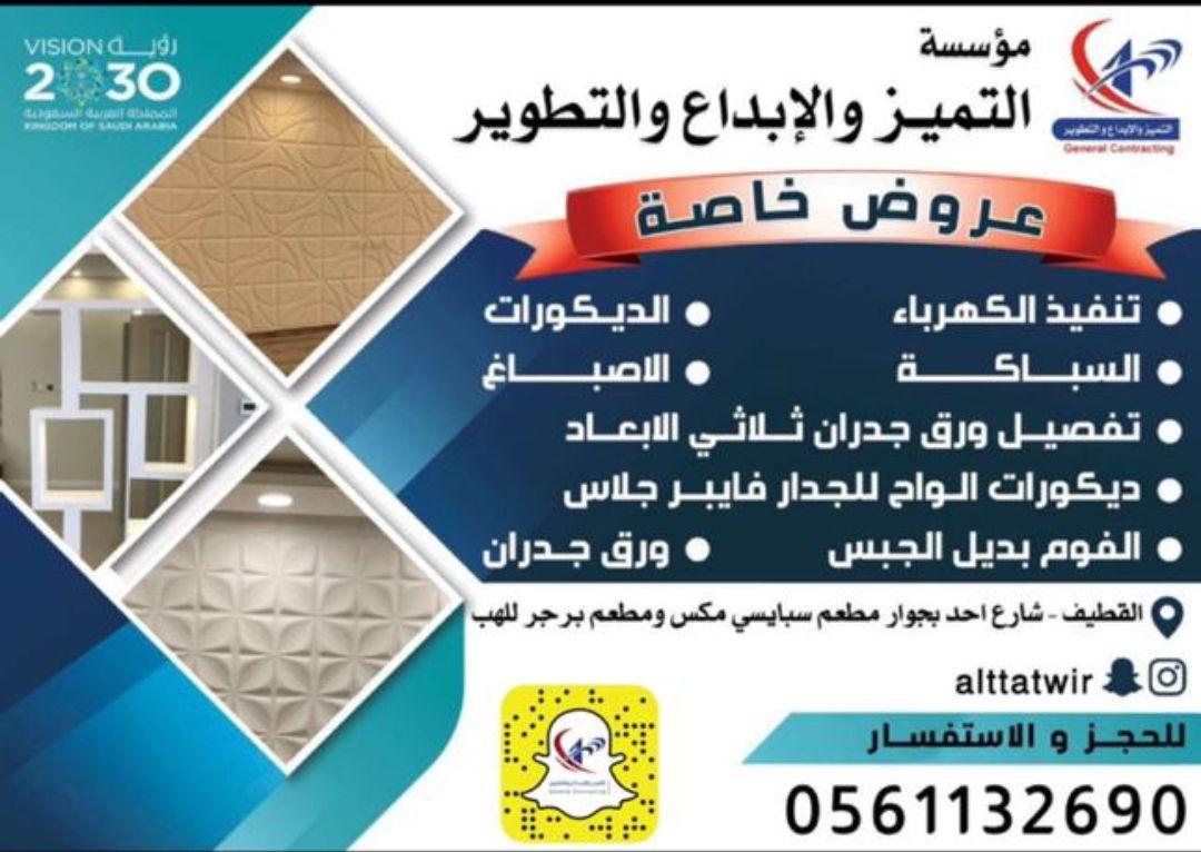 عروض مميزة من مؤسسة التميز والإبداع والتطوير للمقاولات العامة