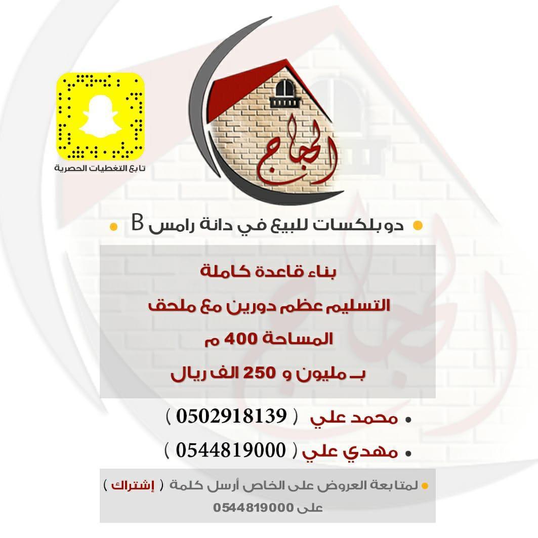 4 - مشروع دانة الرامس A مساحة 400م «شبه منفصل» السعر: مليون و100 الف ريال