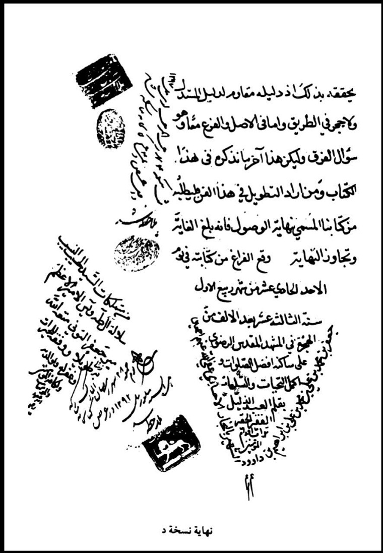 [3]  مكتبة الناصرية بلكنهو بالهند، زودنا بالصفحة الأخيرة من المخطوطة من الهند الباحث السيد علي باقر الموسى الأحسائي في 20 جمادى الثاني سنة 1436 هـ .