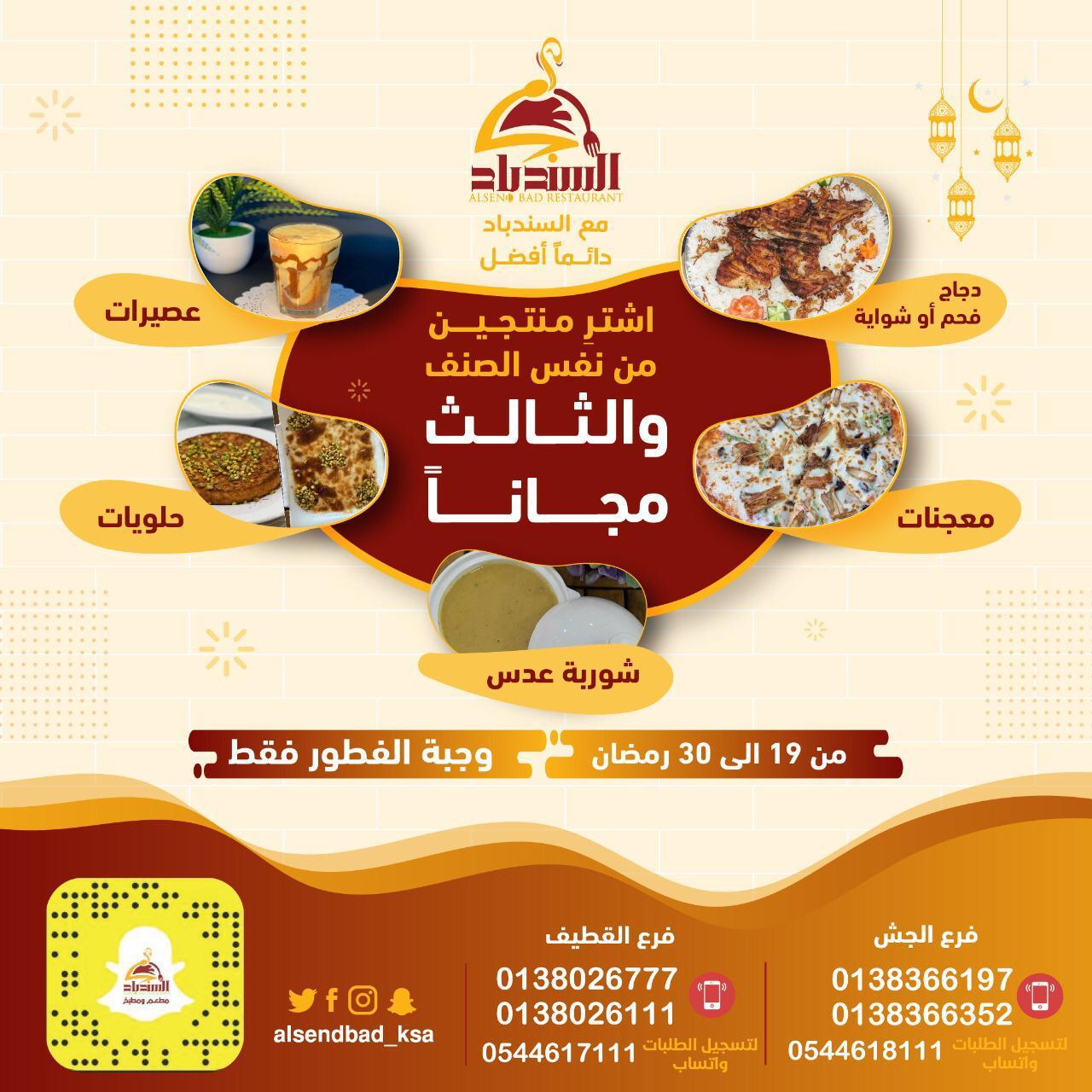 العرض الأقوى.. منتجين والثالث مجانا من مطعم «السندباد»