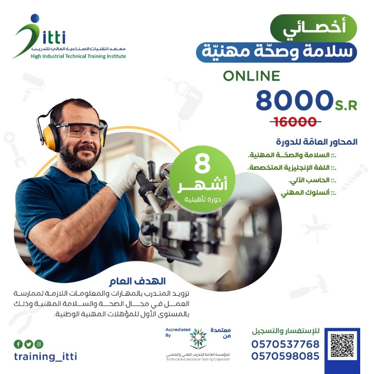 الان...فتح التسجيل ل «أخصائي سلامة وصحة مهنية«