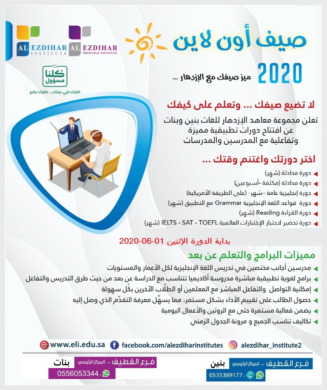 عن انطلاق دورات صيف 2020 المتنوعة عن بعد