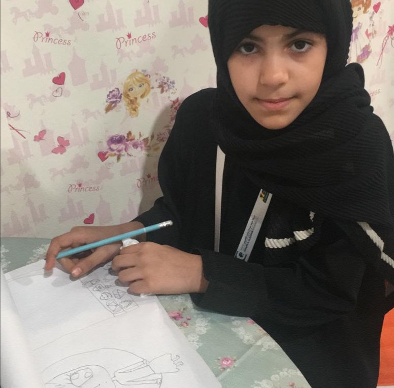 وتابعت بأن ابنتها الموهوبة فكرت في الكنب الموجود في منزلها وقامت بتحضير عدد من الرسومات والتدريب عليها من خلال رسمها في كراسها.