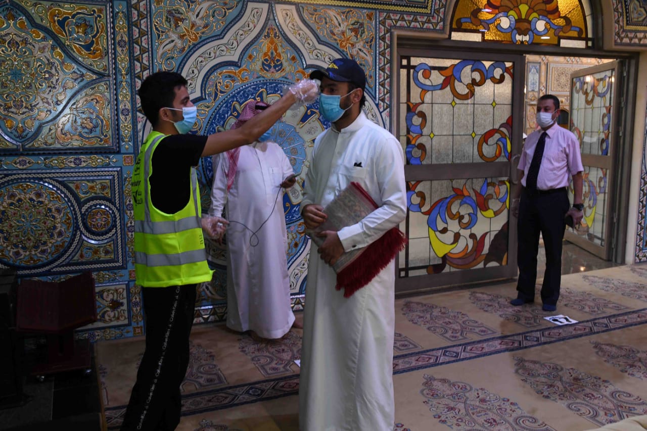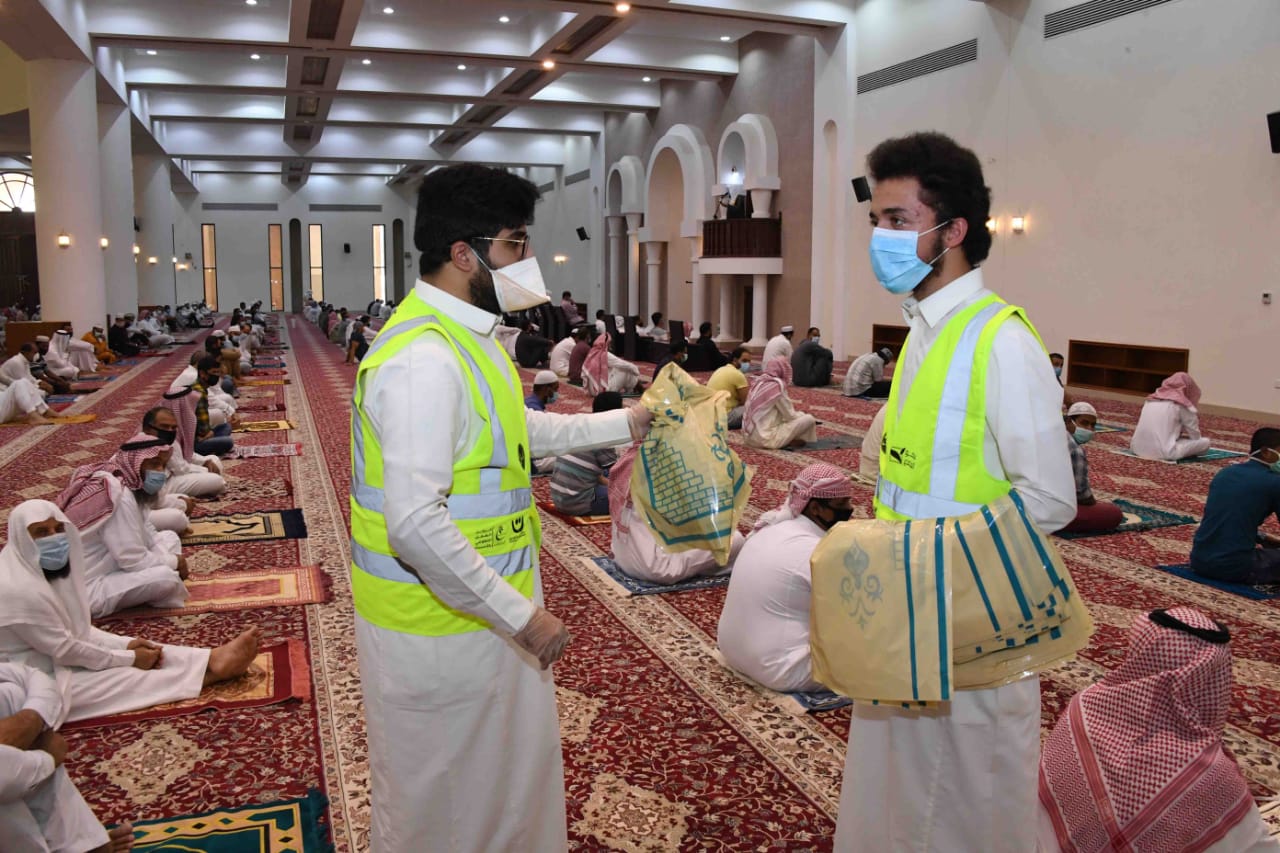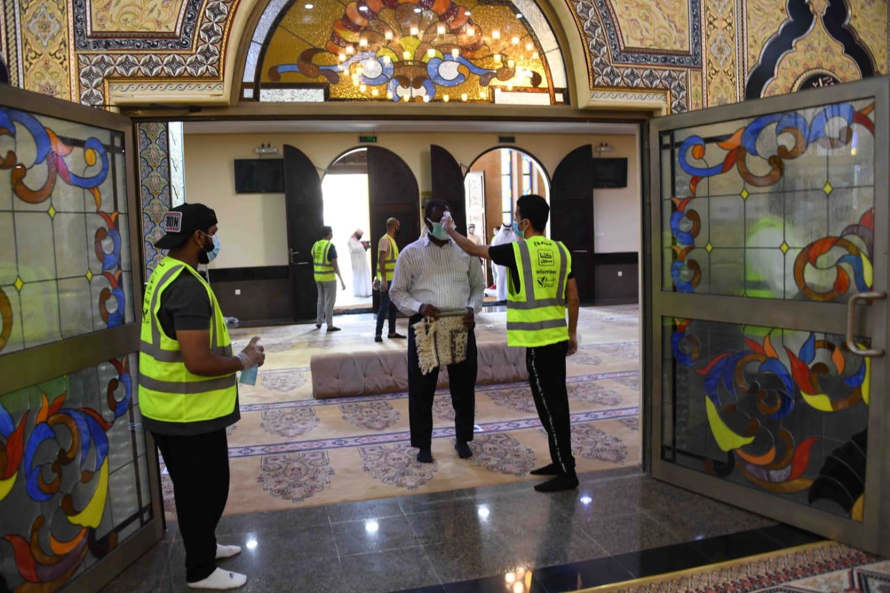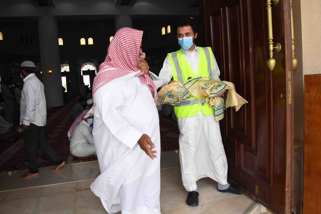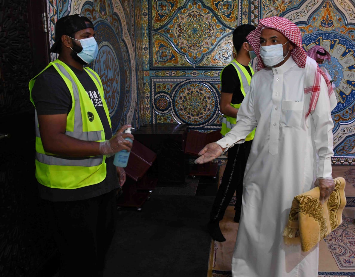 وشكر جميع الفرق التطوعية بالمحافظة على مشاركتها في تنظيم دخول المصلين وتنبيهم بالابتعاد الجسدي بلطف ولين.