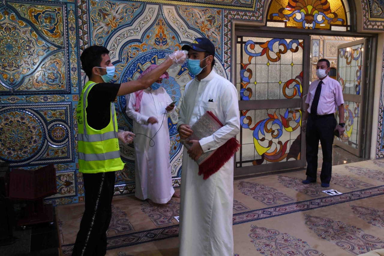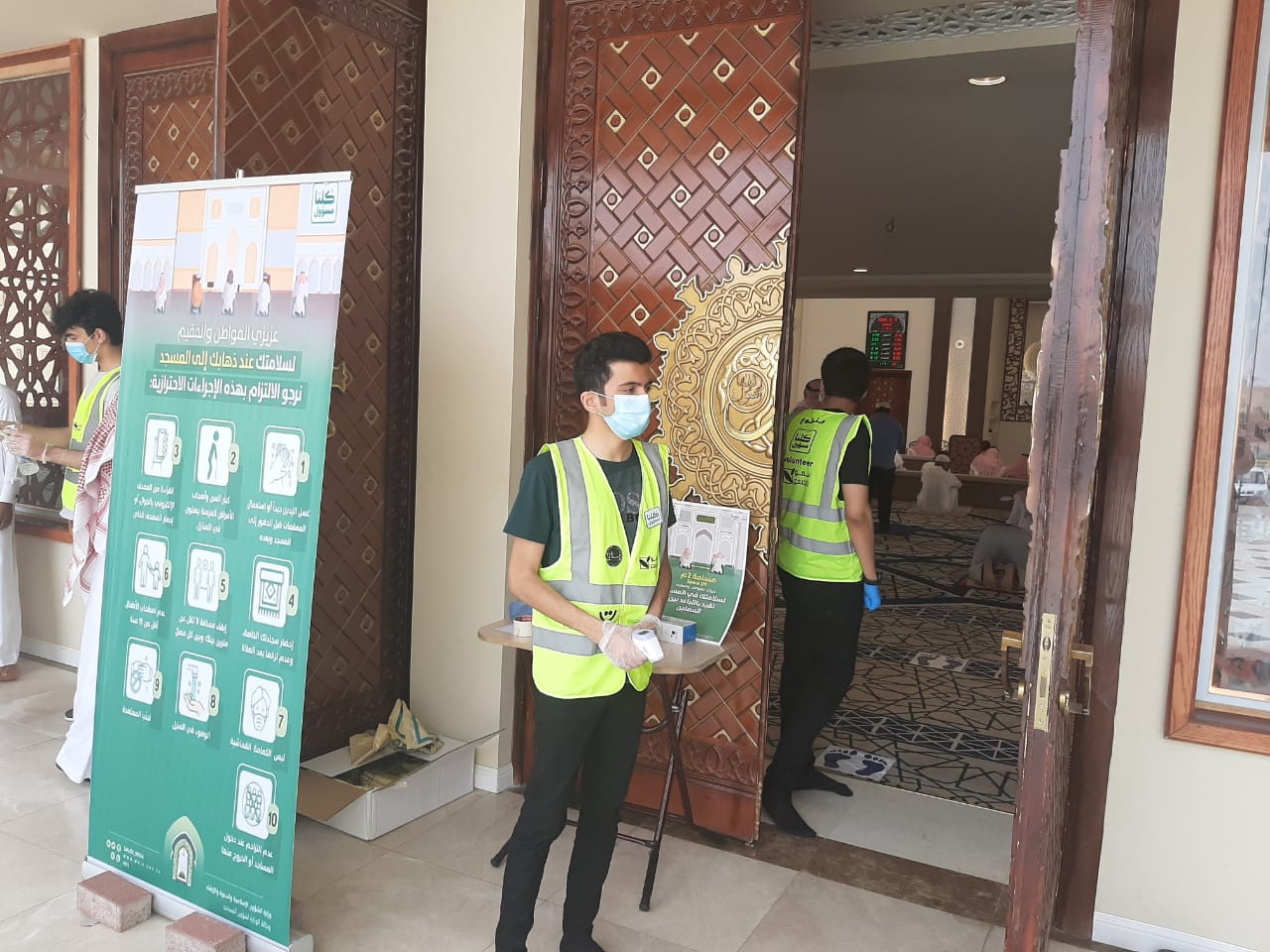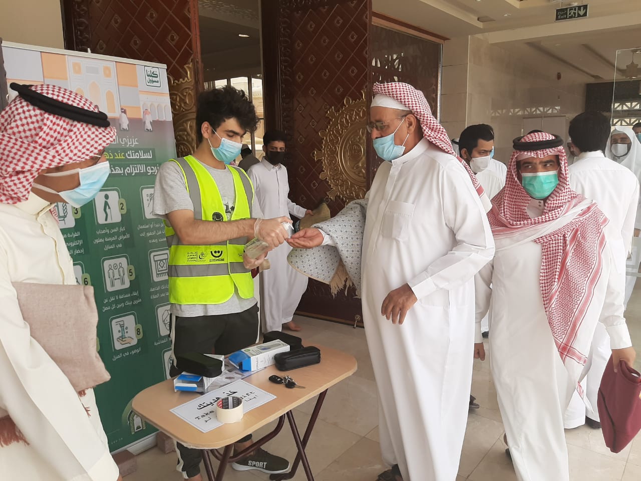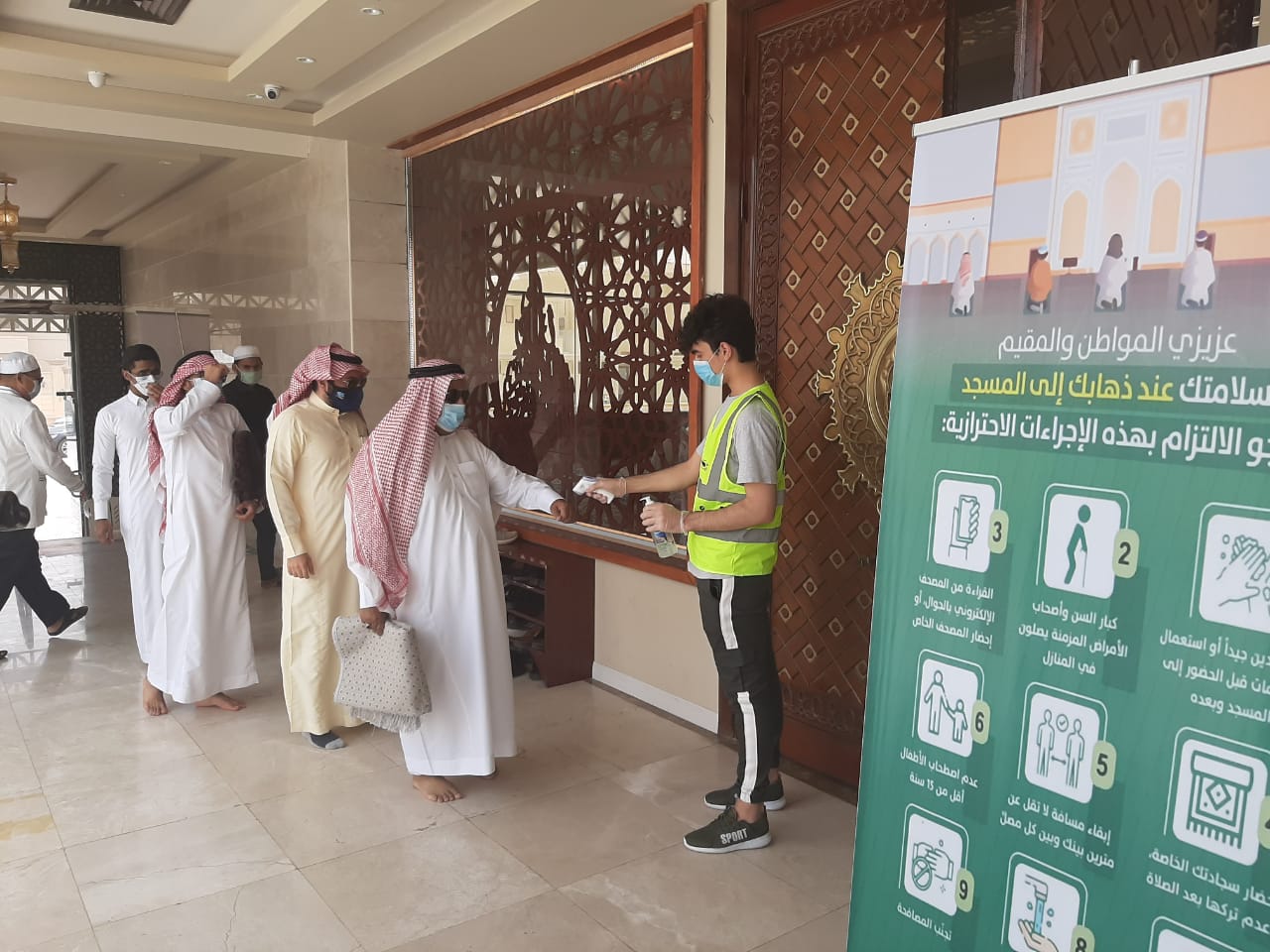 وشكر جميع الفرق التطوعية بالمحافظة على مشاركتها في تنظيم دخول المصلين وتنبيهم بالابتعاد الجسدي بلطف ولين.