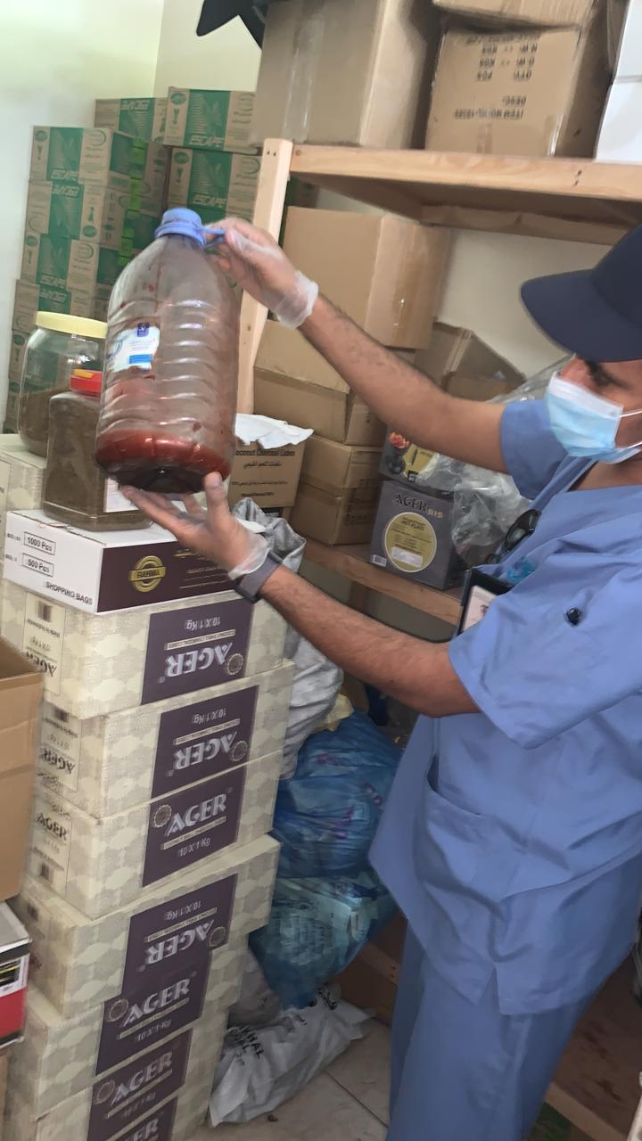 ولفت الى اتلاف أكثر من 1400 كجم من الأحشاء والمقادم وبعض اللحوم المخالفة للاشتراطات الصحية والنظامية وتدني النظافة العامة، وعدم أهلية المكان لهذا النوع من الأنشطة، مما قد يتسبب في نشر الأمراض ونقل العدوى.