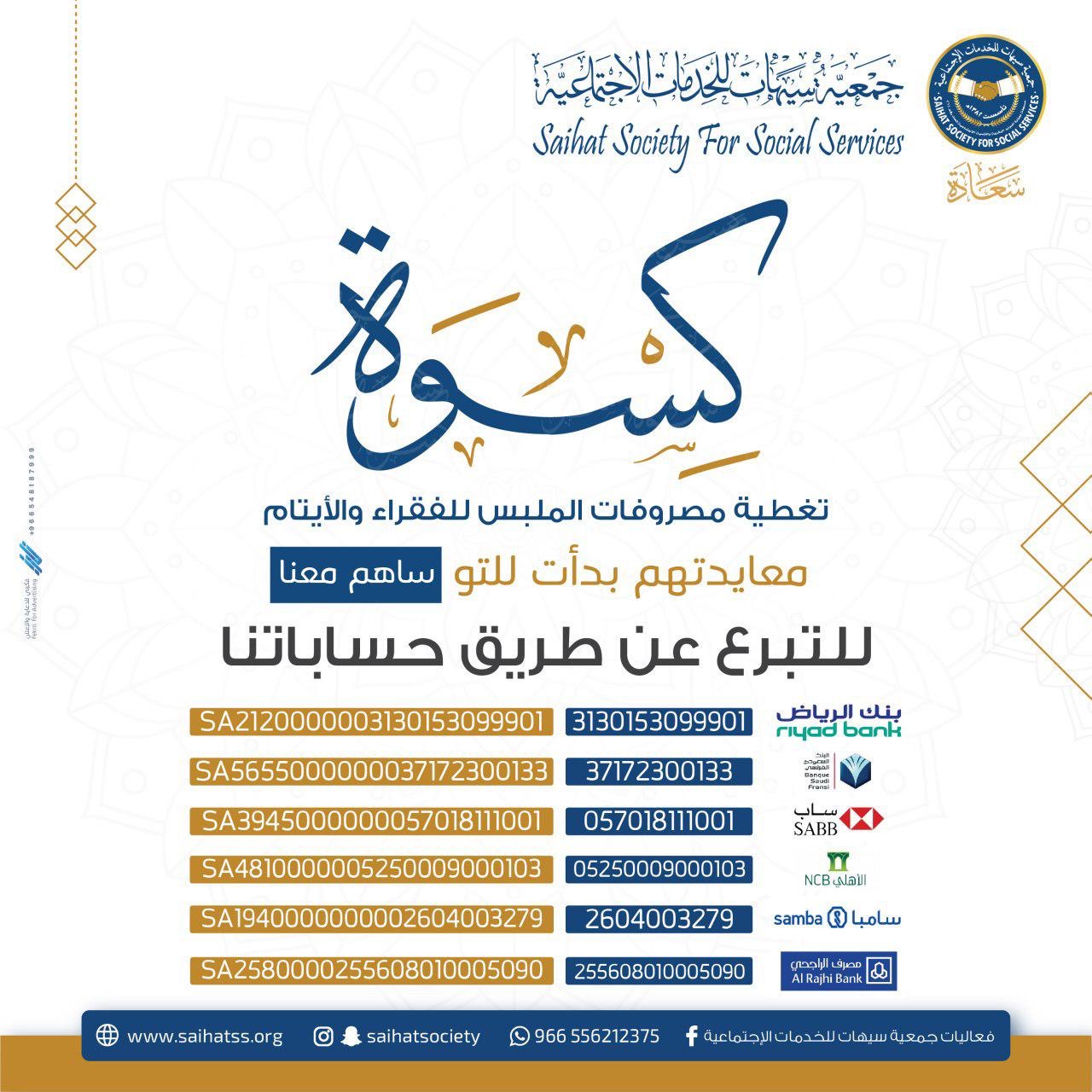 أطلقت جمعية سيهات للخدمات الاجتماعية حملة ”كسوة“ لتغطية مصروفات الملبس للمستفيدين من فقراء وأيتام.