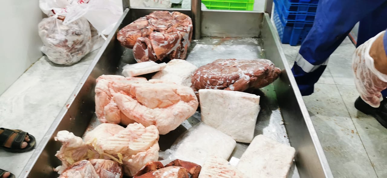 ضبطت بلدية محافظة القطيف ”محل بيع وتصنيف لحوم طازجة“ لمخالفته الاشتراطات الصحية والنظامية، حيث يقوم بتجميد الشحوم في بيئة غير صحية.