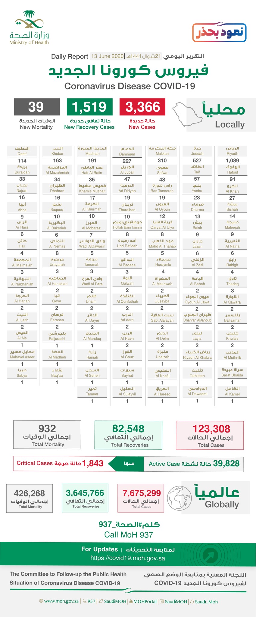 الصحة: تسجيل 3366 إصابة جديدة بكورونا.. منها 114 في القطيف و48 بصفوى وحالة بسيهات