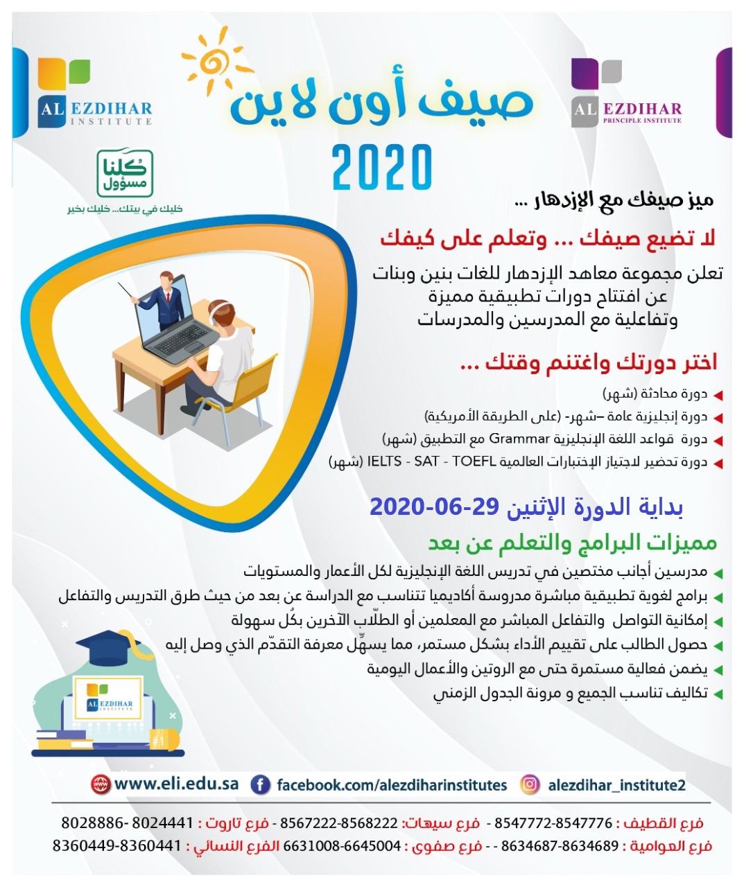 تبدأ الدورات يوم الإثنين 29-06-2020