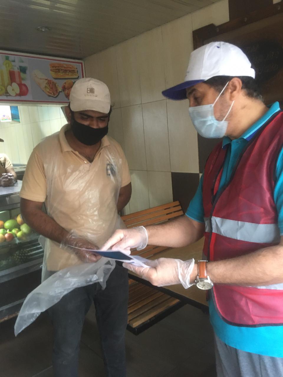 وشملت المبادرة المحال التجارية ومساكن العمال ومرتادي الاماكن العامة والذي يحتوي على الإرشادات الصحية والاجراءات الوقائية والمخالفات والعقوبات المترتبة عليها في ظروف الجائحة واستفاد منها 1500 شخص تقريباً.