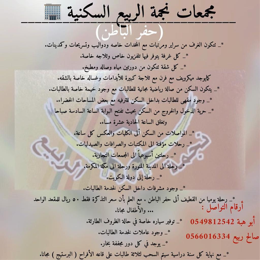 خصم 15% على مجمعات نجمة الربيع السكنية بحفر الباطن ولمدة أسبوع