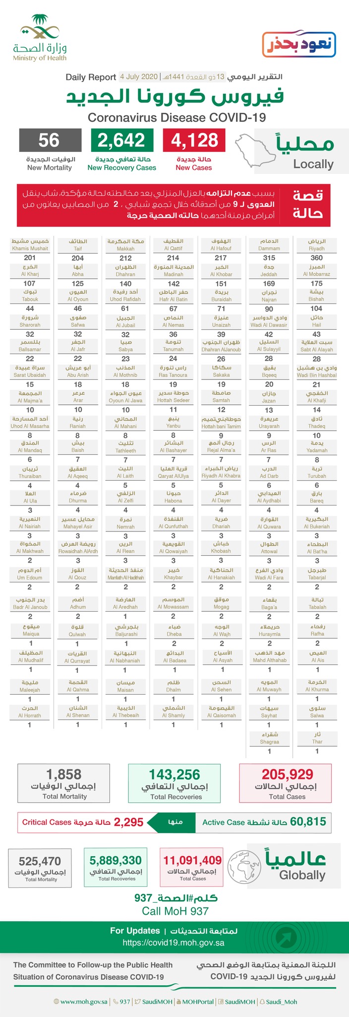 الصحة: تسجيل 4128 إصابة جديدة بكورونا.. منها 214 في القطيف 32 في صفوى وحالة بسيهات