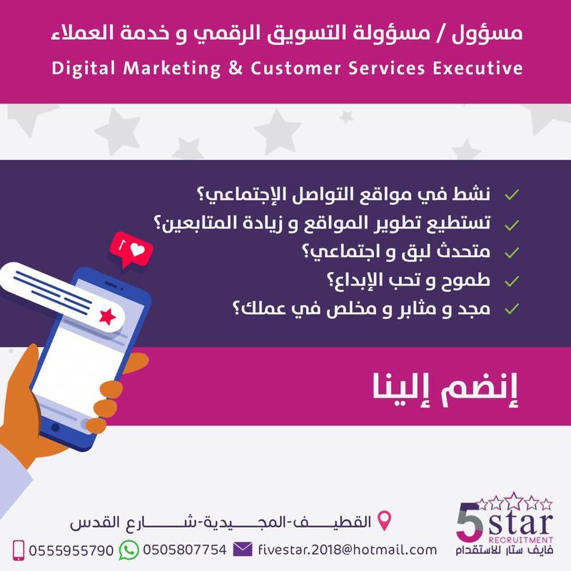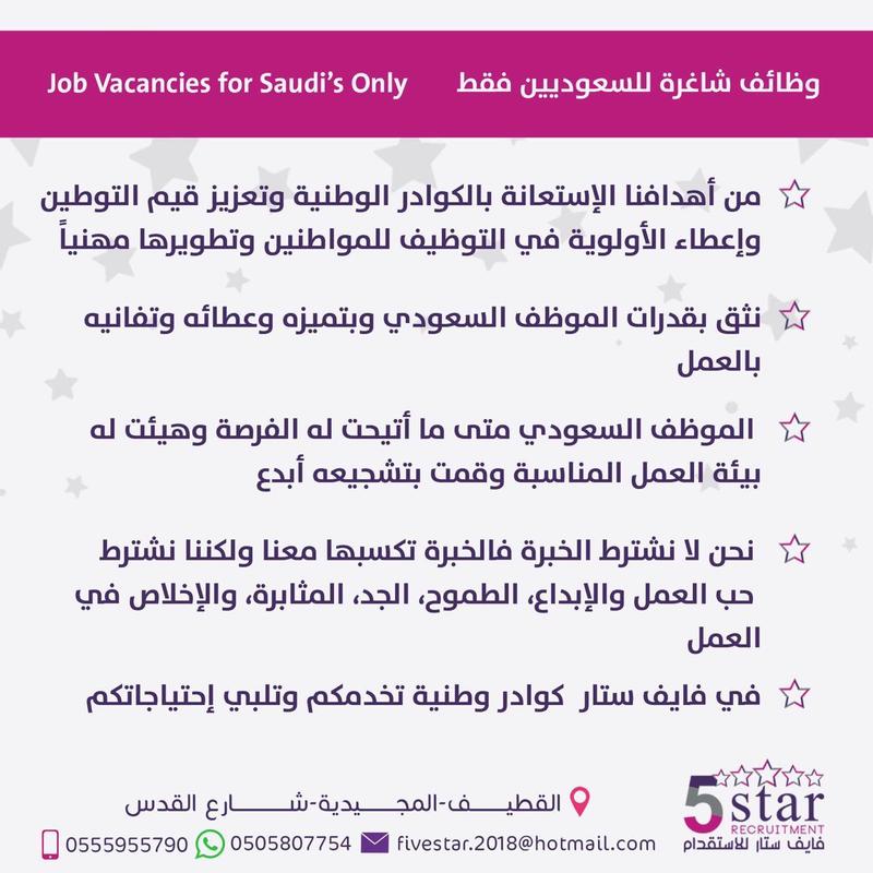 وظائف شاغرة للسعوديين من الجنسين في فايف ستار