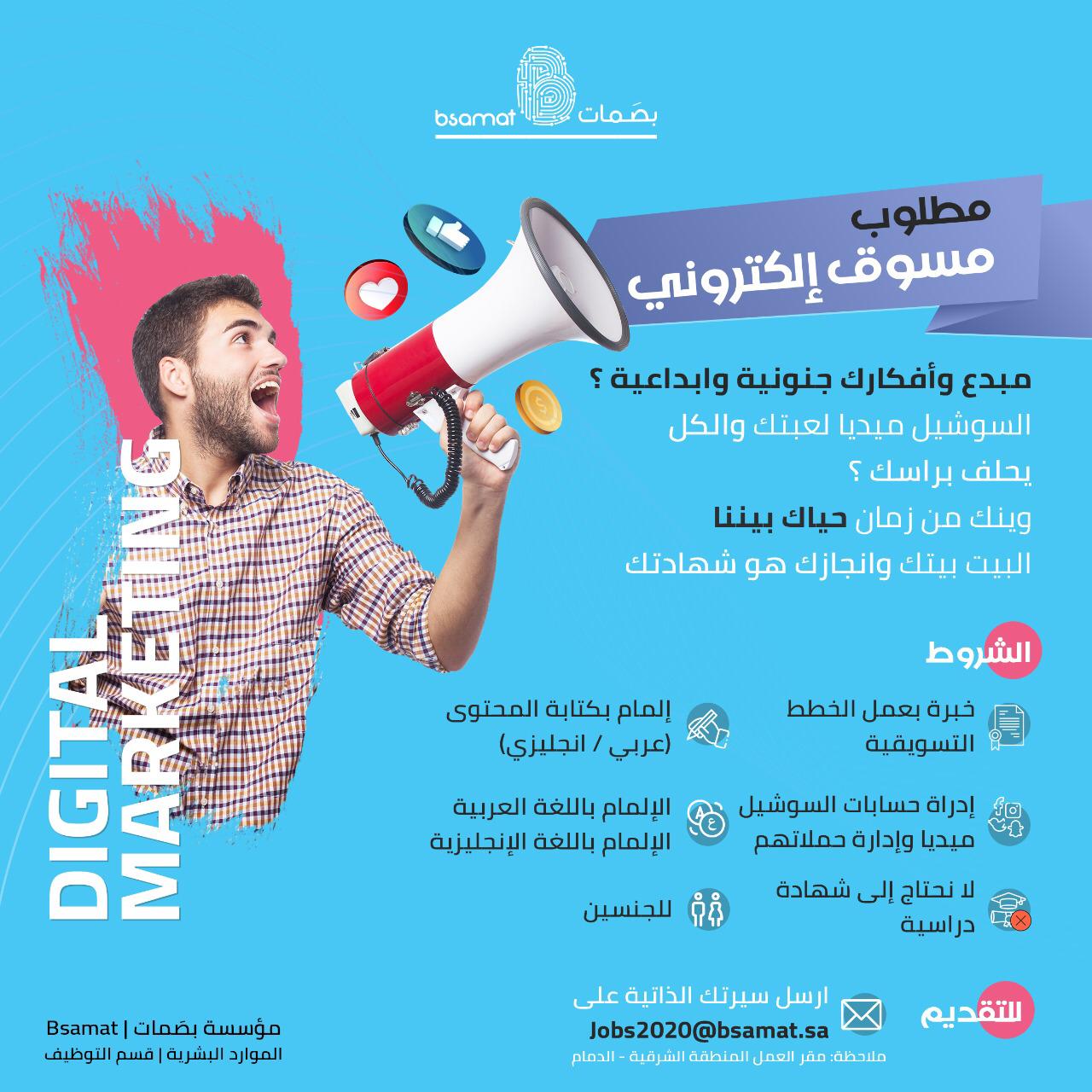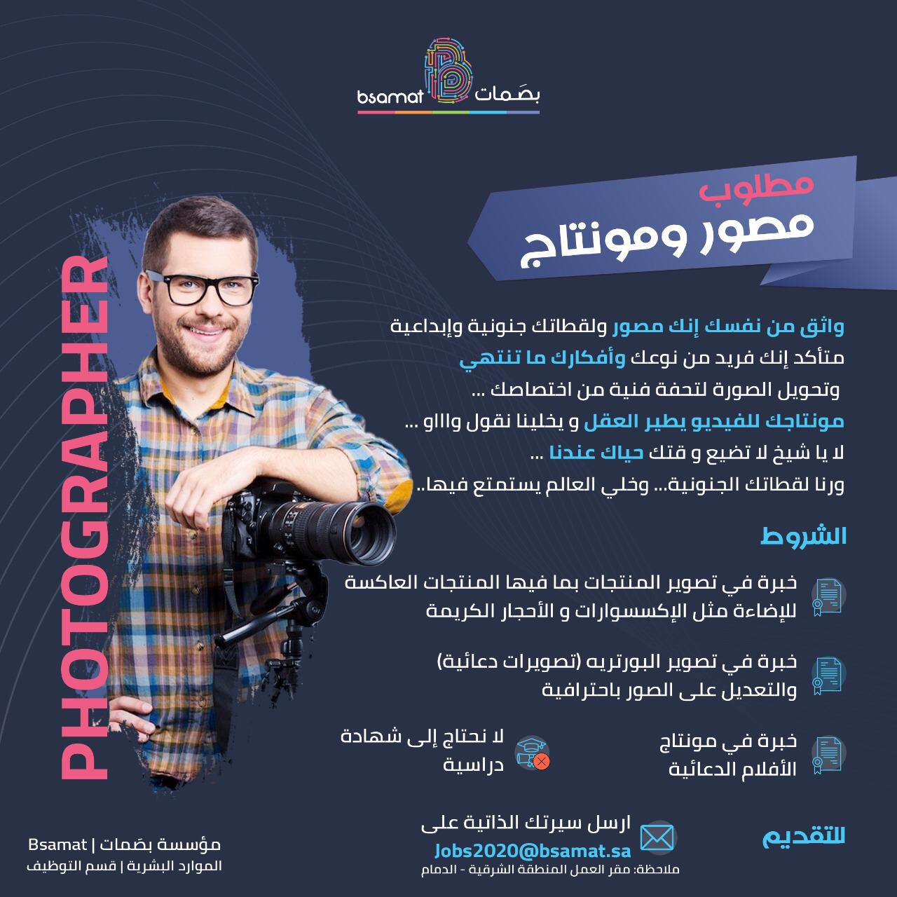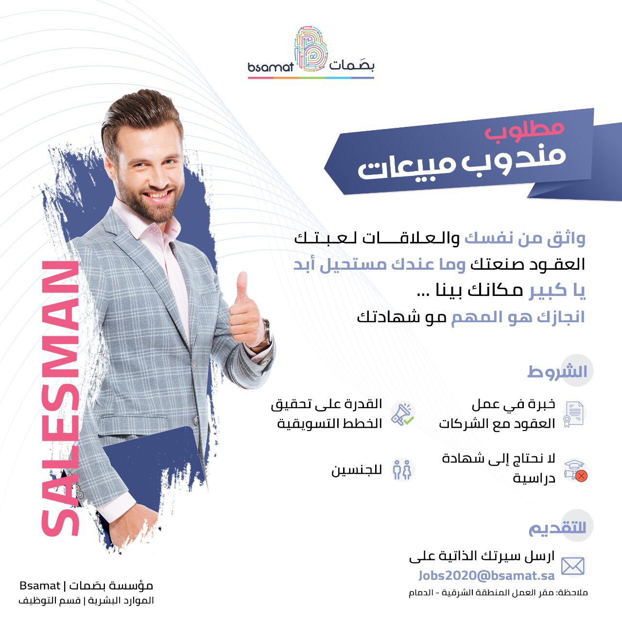 ارسل سيرتك الذاتية على: Jobs2020@bsamat.sa