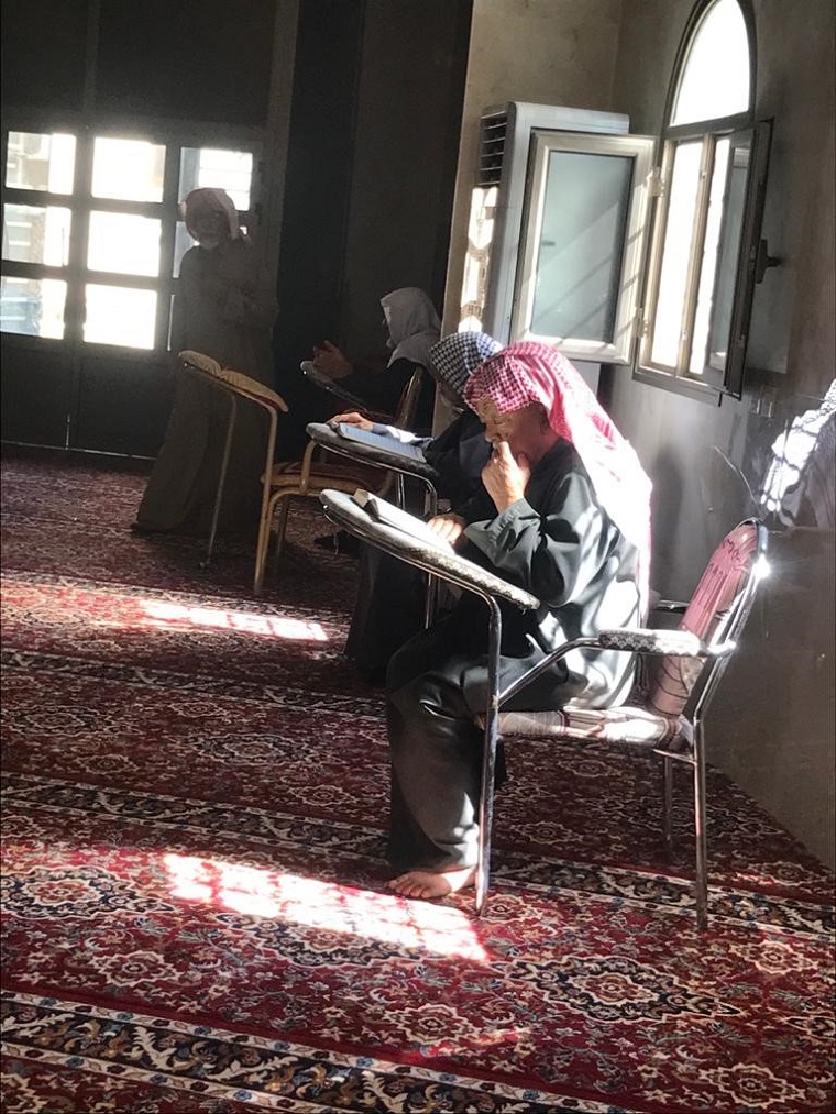 من أطراف المسجد من الداخل حيث يجلس كبار السن يتلون القرآن قبل دخول وقت الصلاة