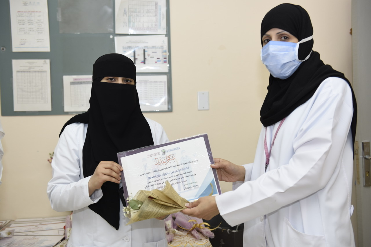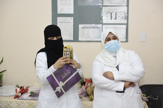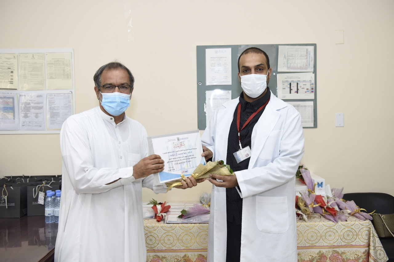 وحضر التكريم مدير المراكز الصحية الدكتور هادي الشيخ ناصر والمدير الطبي بالمراكز الصحية الدكتور قاسم الشعلة ومديرة مركز صحي التوبي ماجدة المناسف والمسؤول الإداري نزار أبو الرحي.