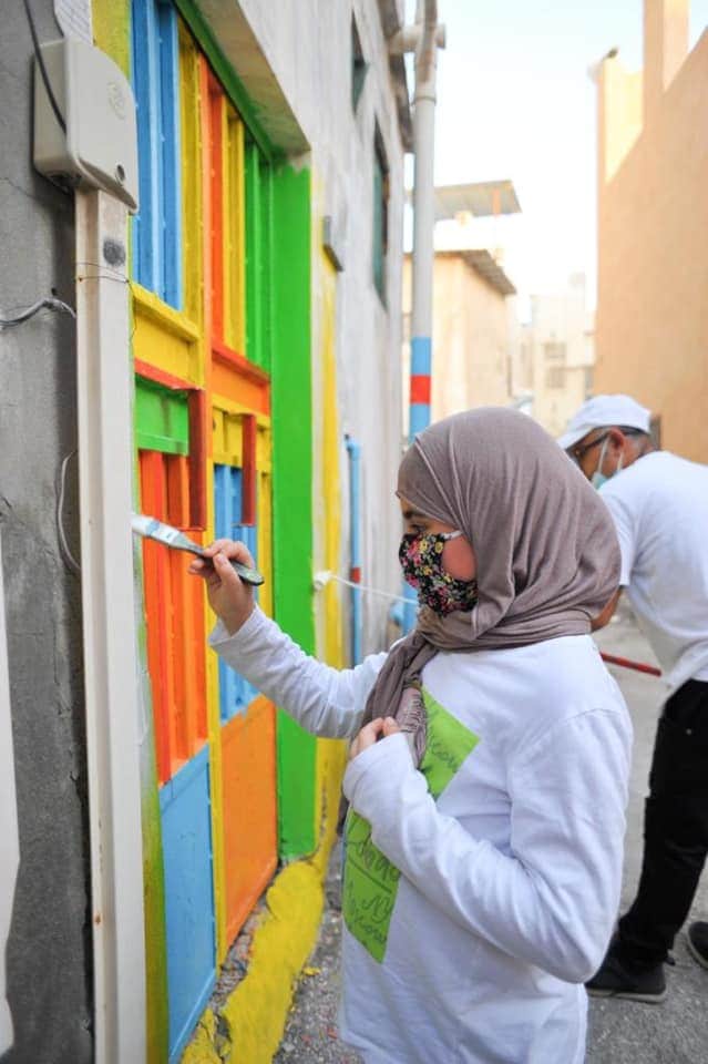 وتضمنت المبادرة مرحلتين هما تلوين الأبواب وإعادة الدهان الأبيض لبعض الجدران، والمرحلة الثانية وضع أحواض للزهور والشجيرات في الحي لتكون أكثر جمالاً وبهجة للمكان.