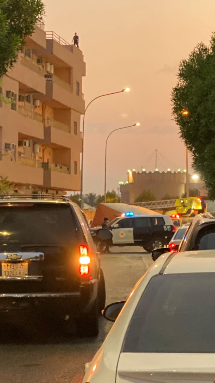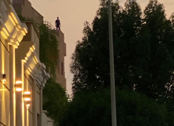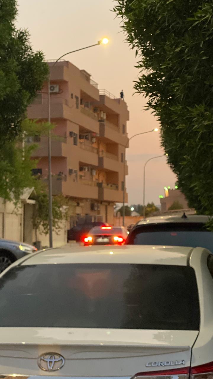تداول رواد مواقع التواصل الاجتماعي صور لشاب مقيم وهو يعتلي سطح احد المطاعم محاولا الانتحار.