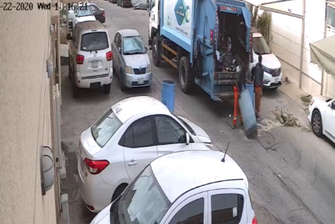 رصدت إحدى الكاميرات المنزلية بحي الخامسة بالقطيف عمالا نظافة يلقون بالمخلفات الزراعية والاسمنتية من براميل النظافة لقارعة الطريق قبل إفراغ باقي المحتويات في شاحنة القمامة.