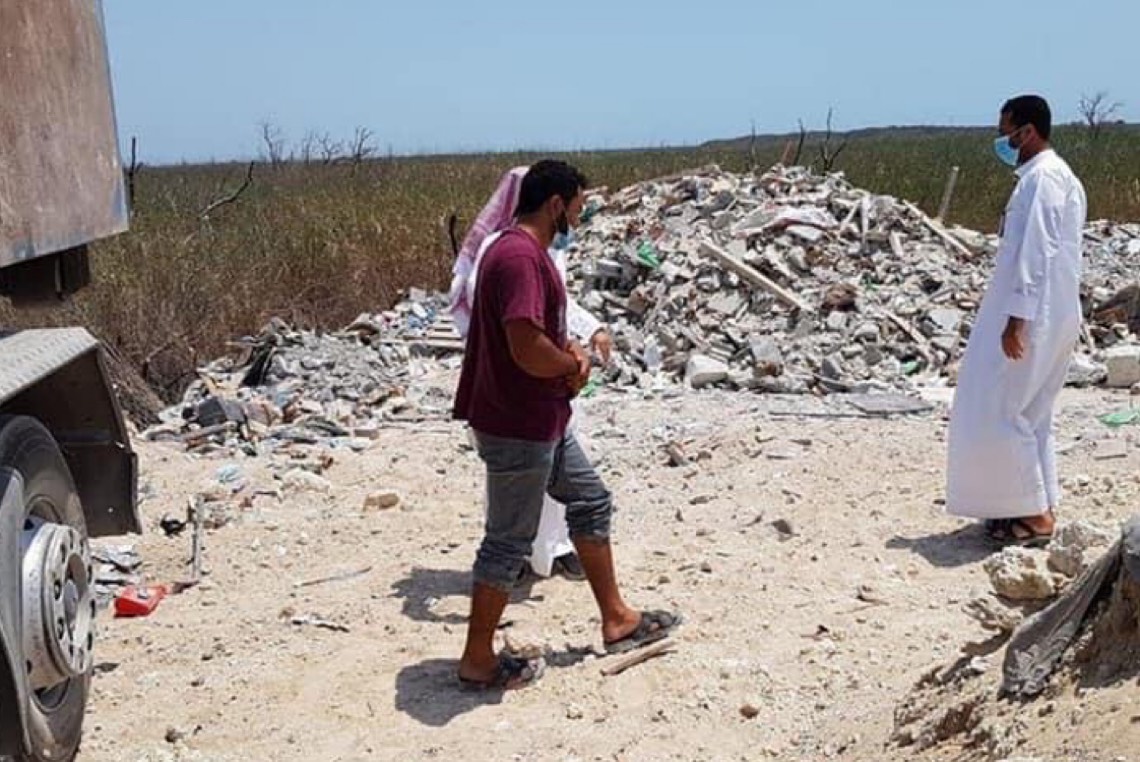 ضبطت بلدية محافظة القطيف شاحنة مخالفة تقوم برمي الأنقاض والمخلفات بحي الجامعيين في تاروت.