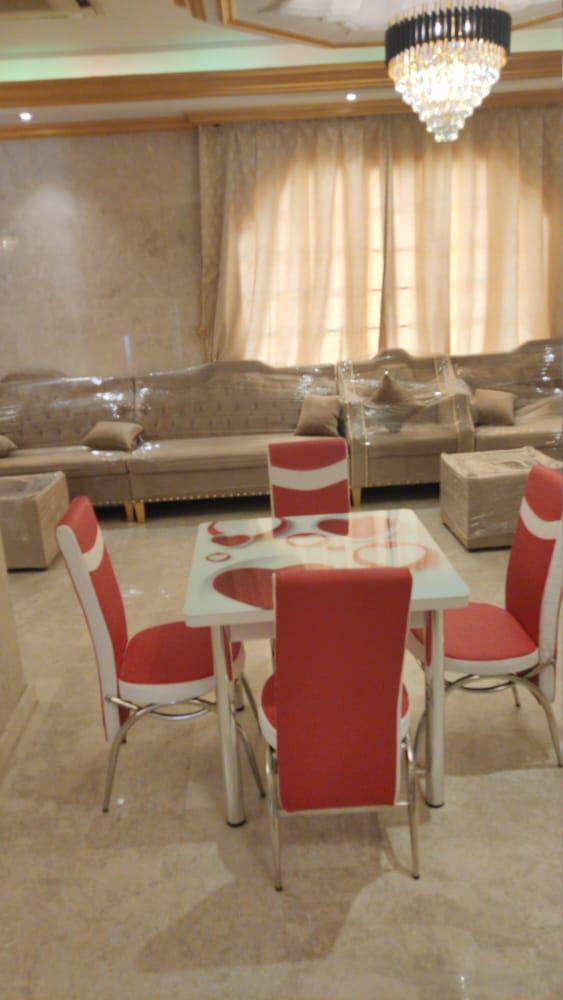 _ كل شقة تتكون من دورتين مياه وصالة ومطبخ. كمايوجد ميكرويف مع فرن مع ثلاجة كبيرة وغسالة خاصة بالشقه.