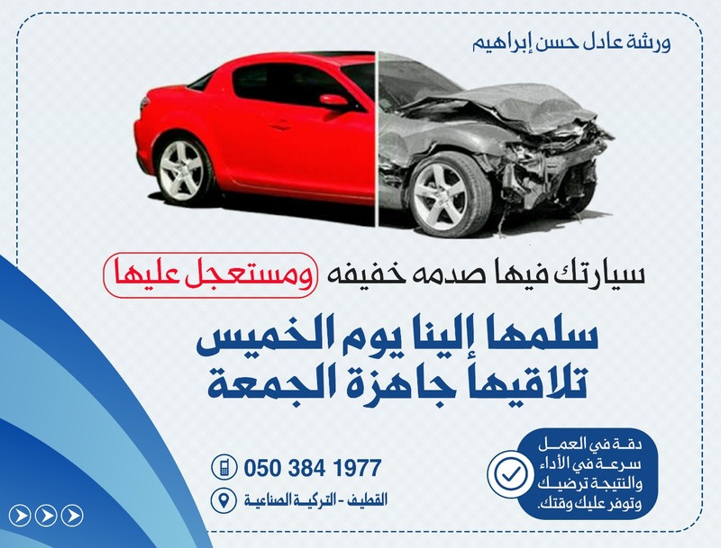 ورشة عادل حسن ابراهيم لصيانة السيارات تقدم لك خدماتها في صيانة السيارات واصلاحها بعد الحوادث